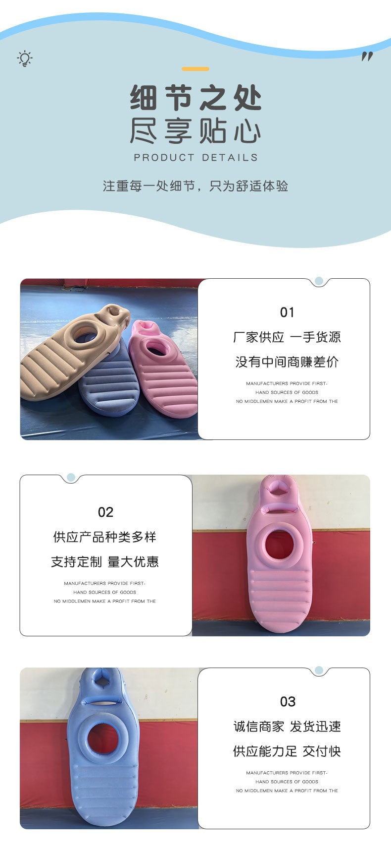 ✔PVC充气产品是密闭的气囊型结构,使用柔软舒适.