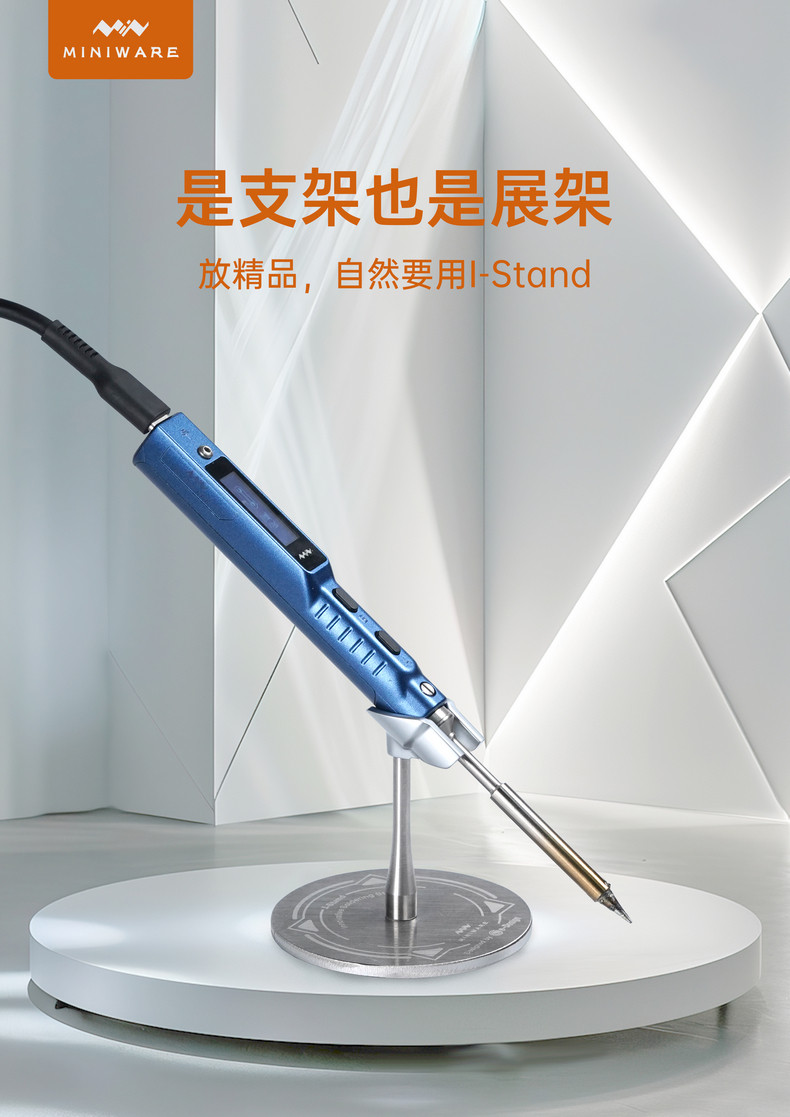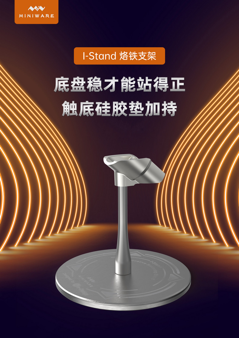 I-STAND不锈钢烙铁支架为:TS101电烙铁和SA80电烙铁专用烙铁支架。这2款通过地线夹链接不锈钢支架和烙铁控制端,可以实现放入支架立刻进入休眠的功能。