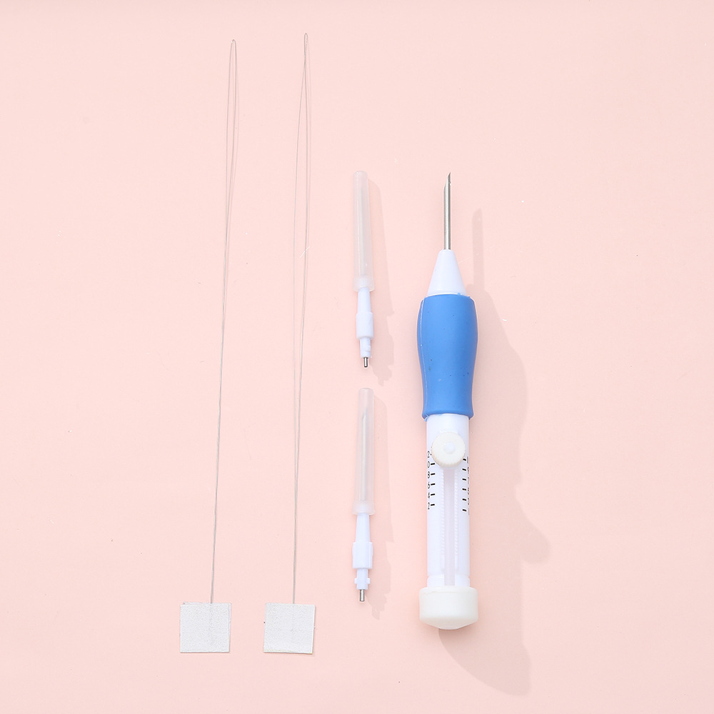 PN-001 塑料针手柄(长11.5cm*粗1.8cm) 两根穿针器(粗/细) 三针可换绣针头(1.3mm 1.6mm 2.2mm)