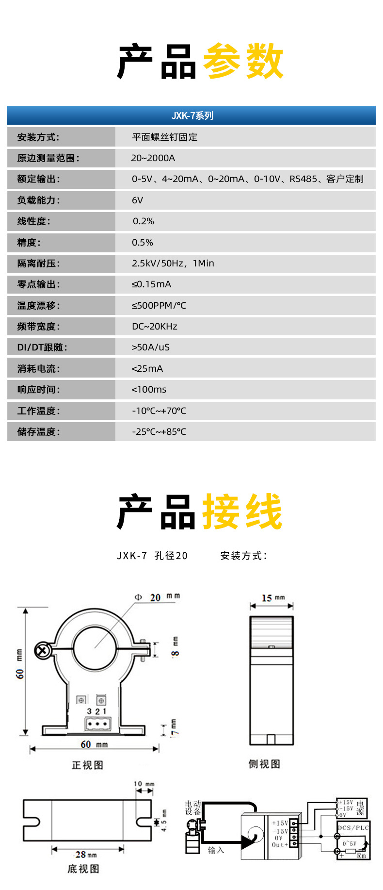 Датчик тока Hall DC AC открытого замыкания 4-20ma 50A100 трансформатор 0-5V