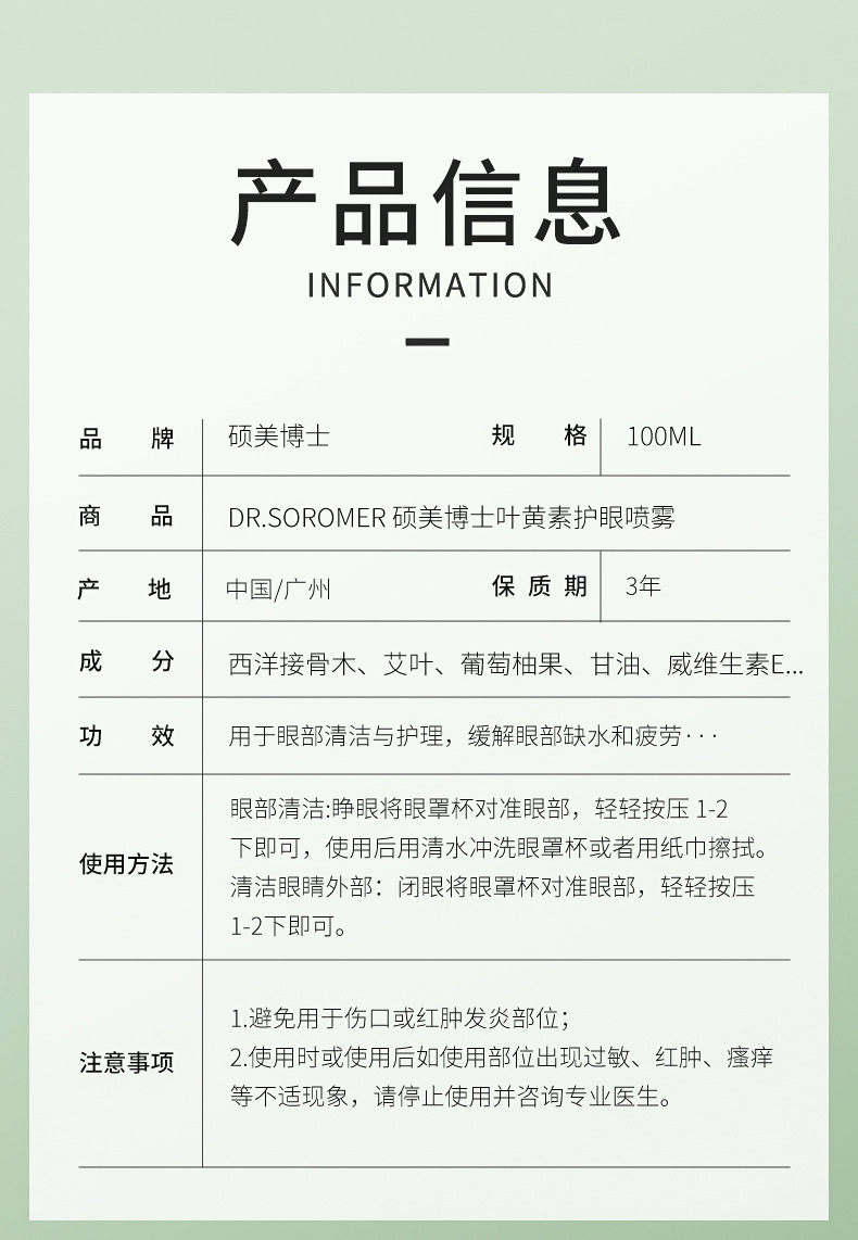 Специальное название косметического продукта Dr. shuomei lutein eye care spray