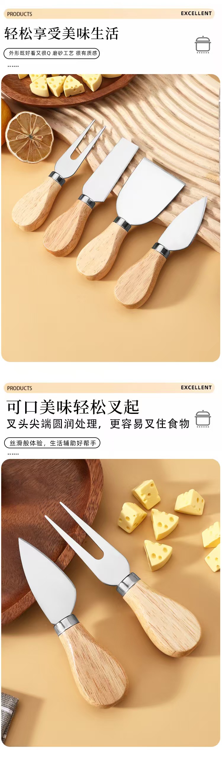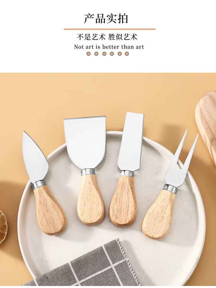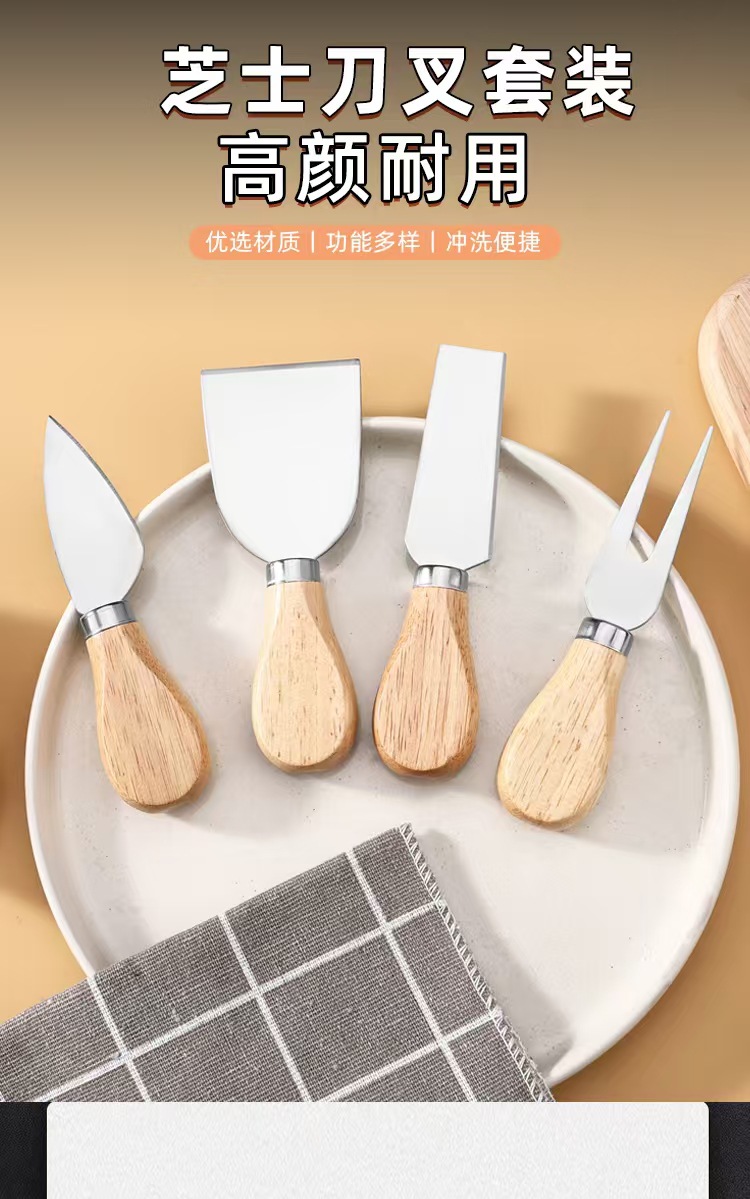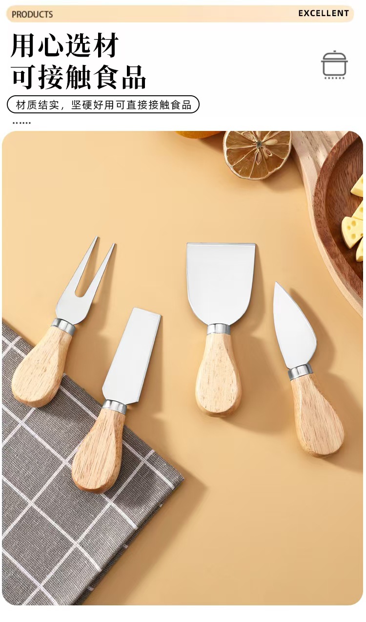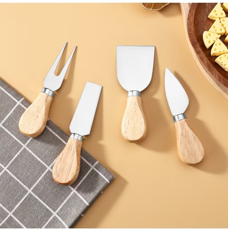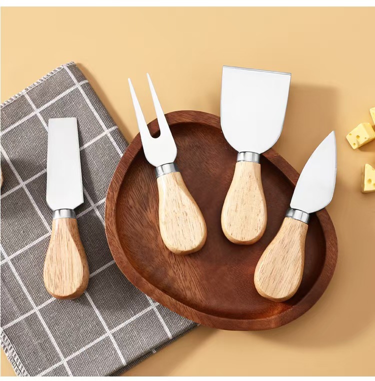Набор из 4 предметов, нож для сыра из нержавеющей стали, деревянная ручка, нож для пиццы, вилка, лопата