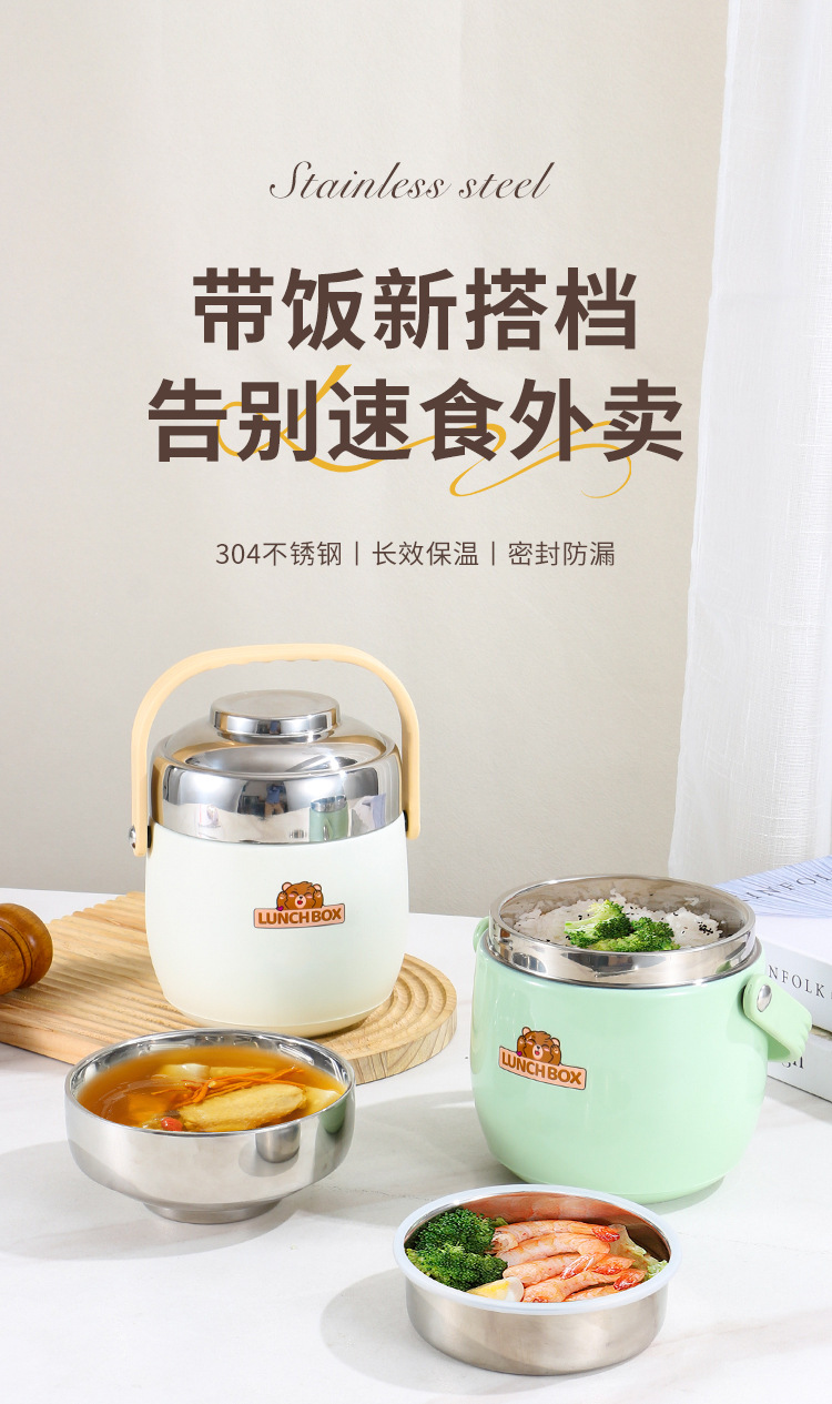 Изолированный ланч-бокс из нержавеющей стали 304, портативный, мультислойный, большой, удобный для офиса