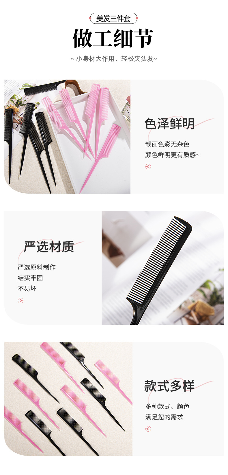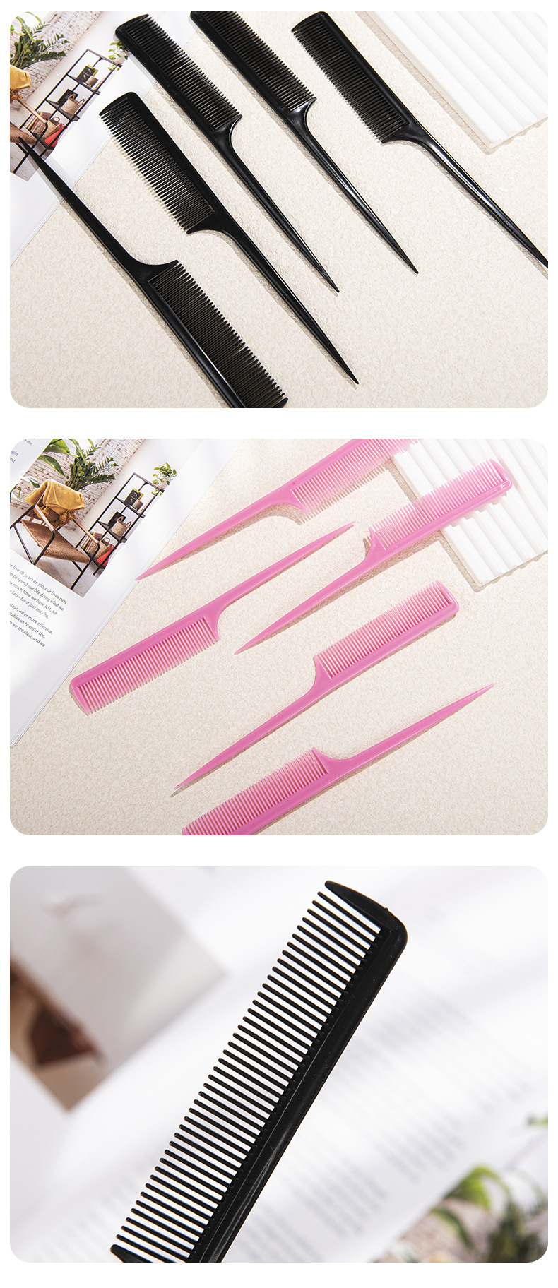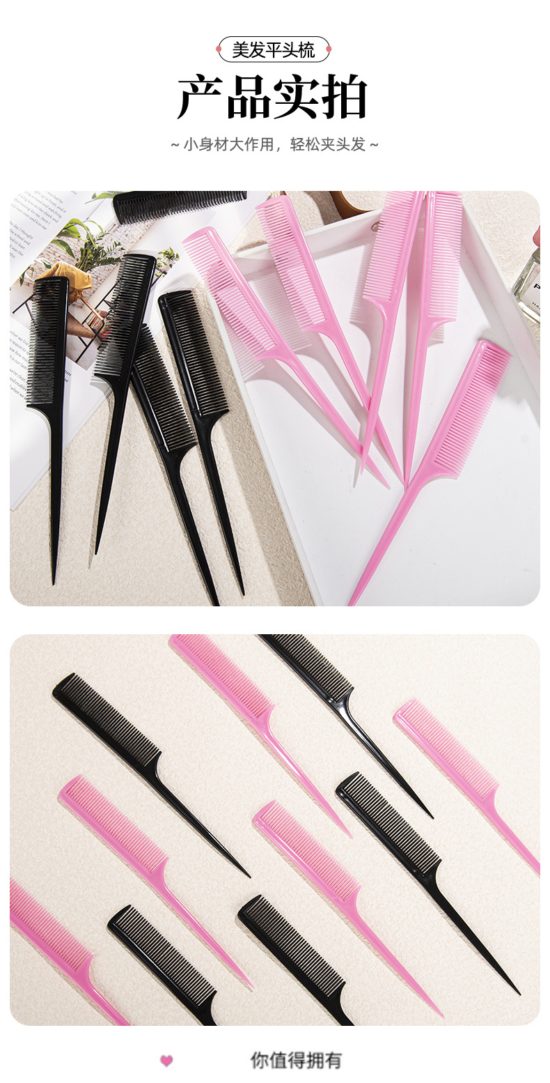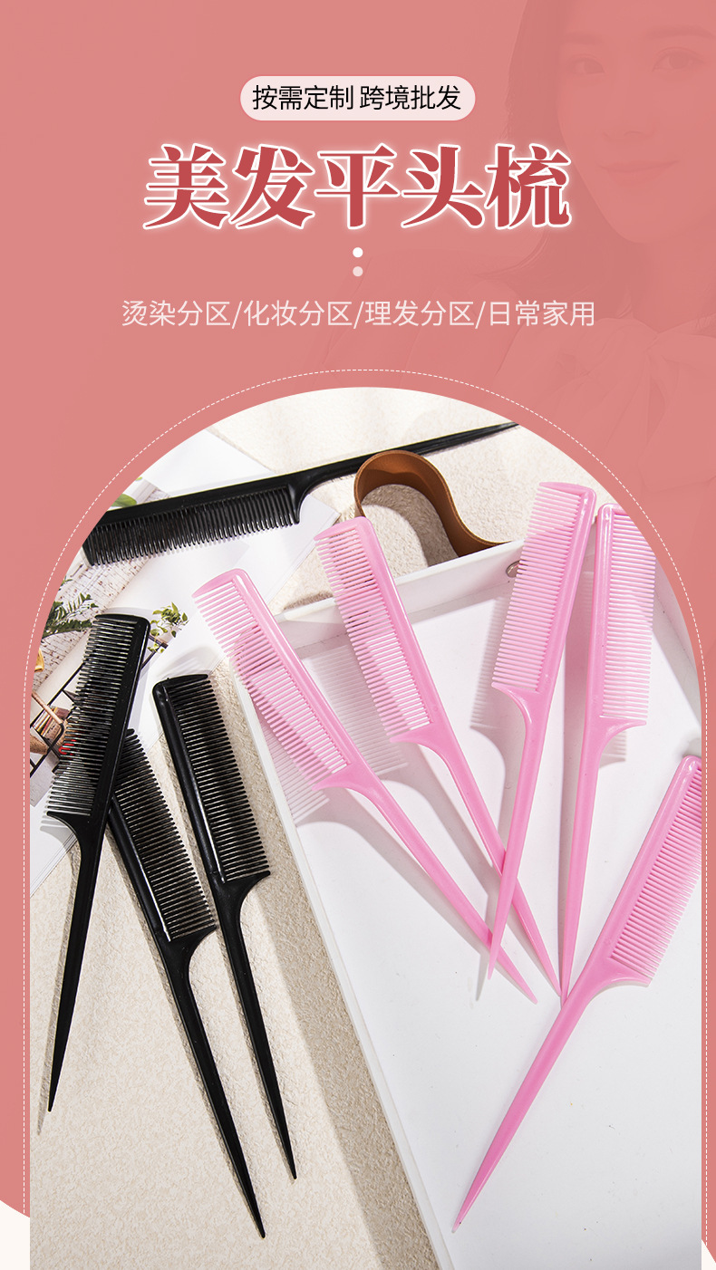 Цветной длинный хвостовой гребень для волос с заостренным концом, пластиковый гребень для макияжа, плоская головка, инструменты для макияжа