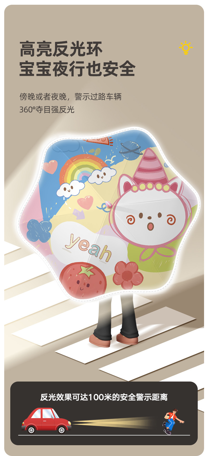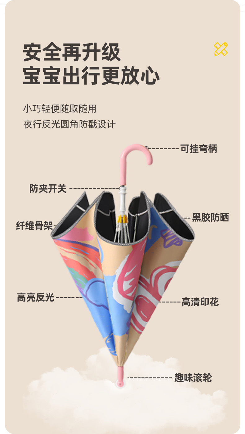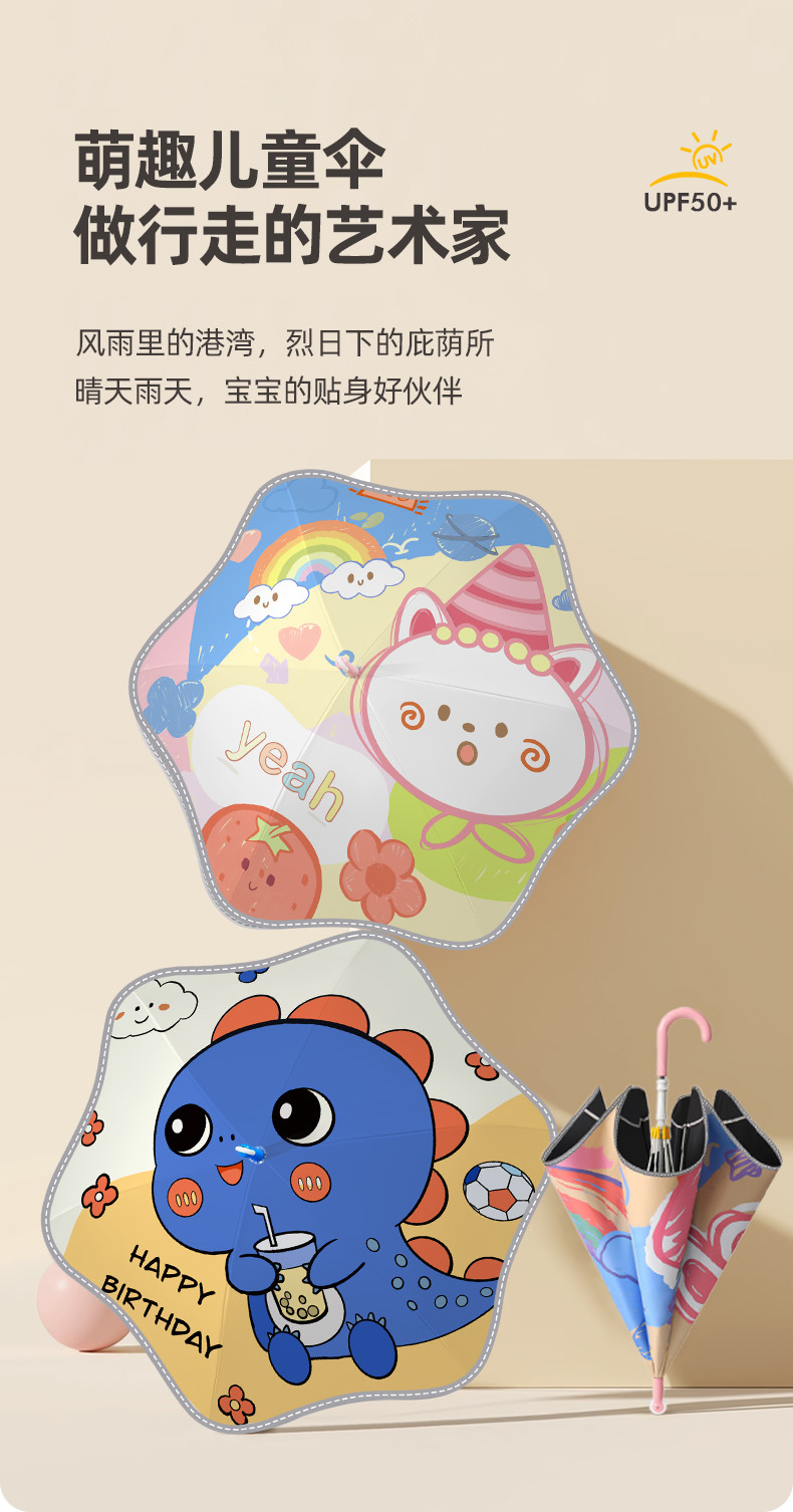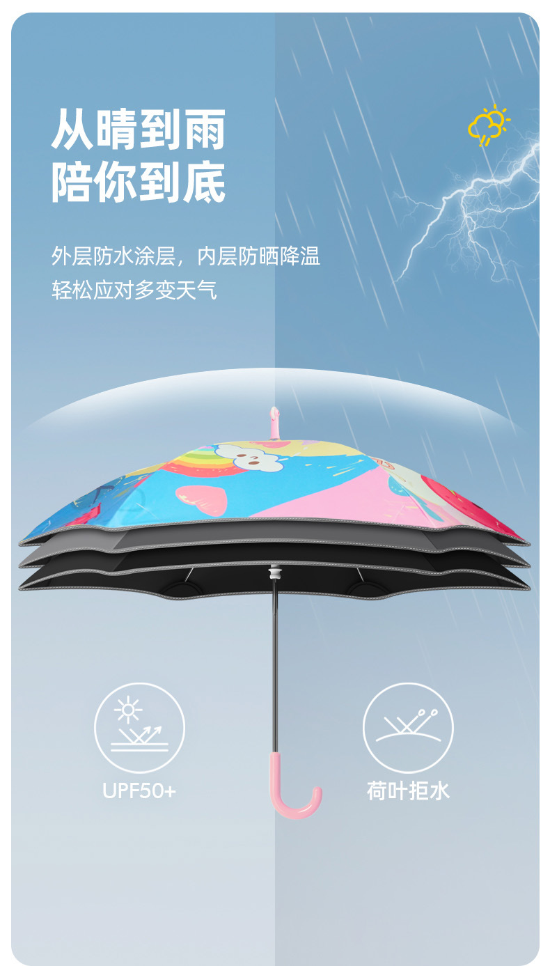 Детский зонт с прямой ручкой, безопасный, для легкого дождя