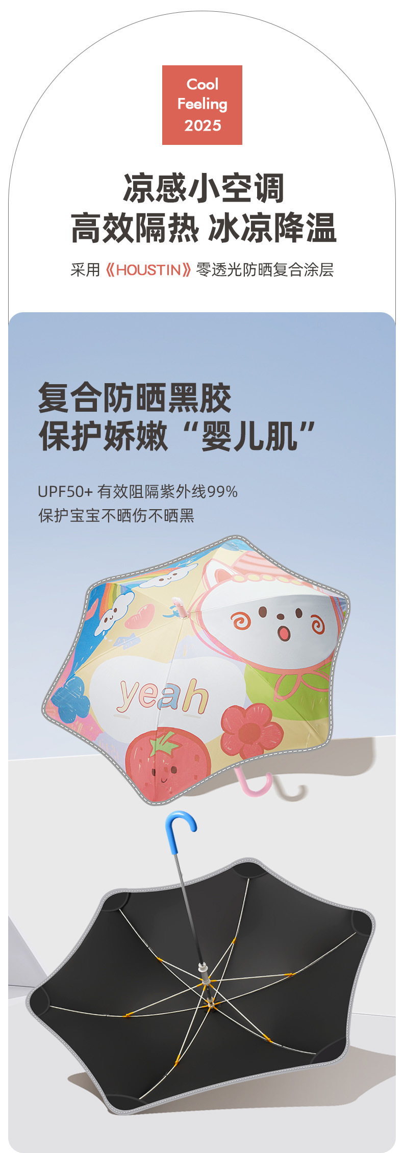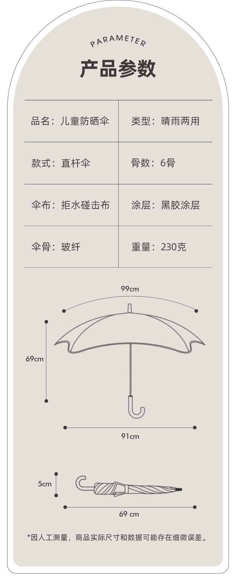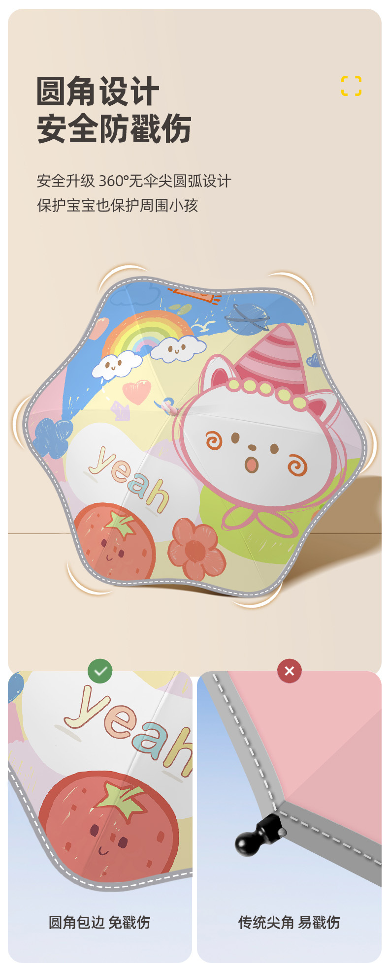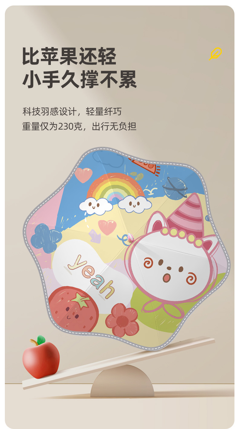 Детский зонт с прямой ручкой, безопасный, для легкого дождя