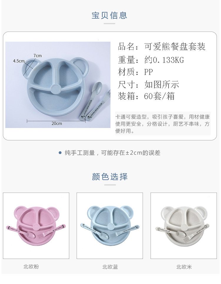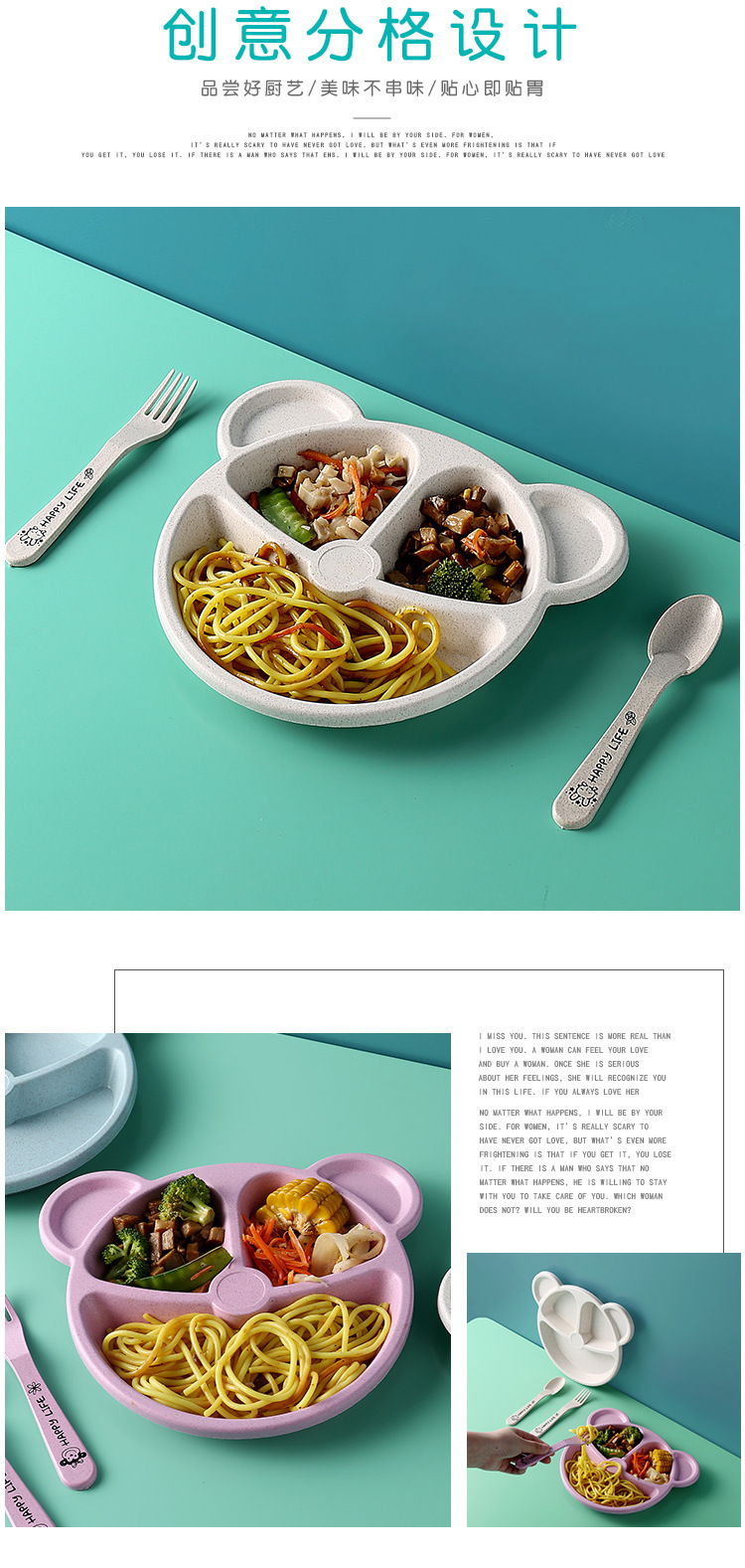 Набор столовой посуды для детей из пшеничной соломы с разделителями, тарелка, ложка, вилка 3 предмета
