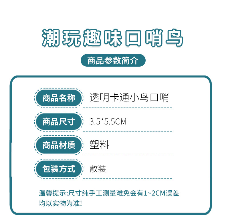📦 | Transparent bird whistle | 1шт: ¥0.09, 10000шт: ¥0.08 | 892269 | 5694587104585 |