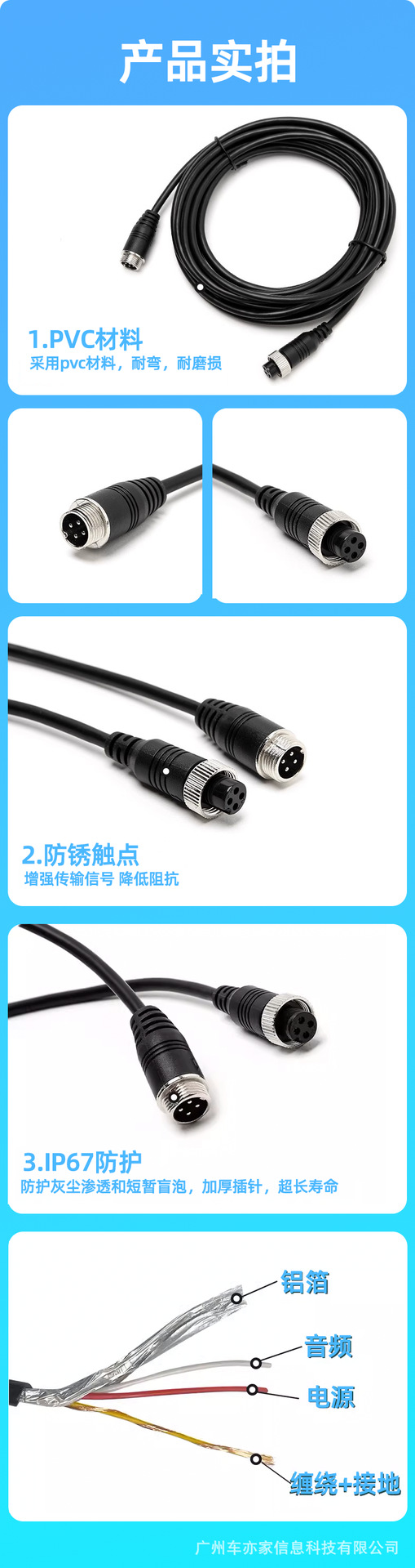 Удлинительный кабель авиационной головы M12 для грузовиков, четырехканальная мониторинговая соединительная линия, удлинитель видеонаблюдения для прицепа