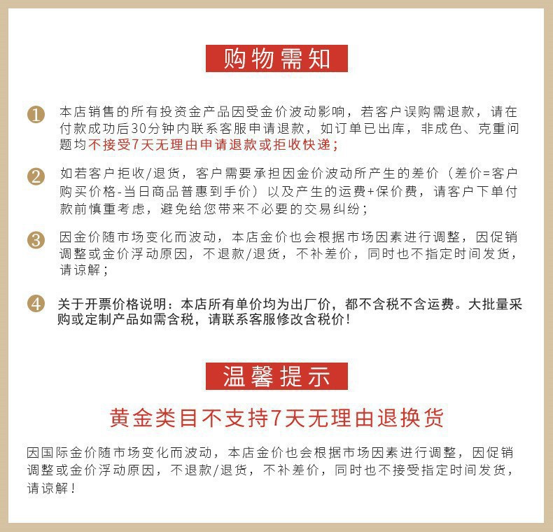 ![]() | Pure gold 5d hydrogen-free hard gold | Single bead + national inspection certificate | ¥76.0 / ≈ 918 ₽ | 6666 | 5698149457165 | |