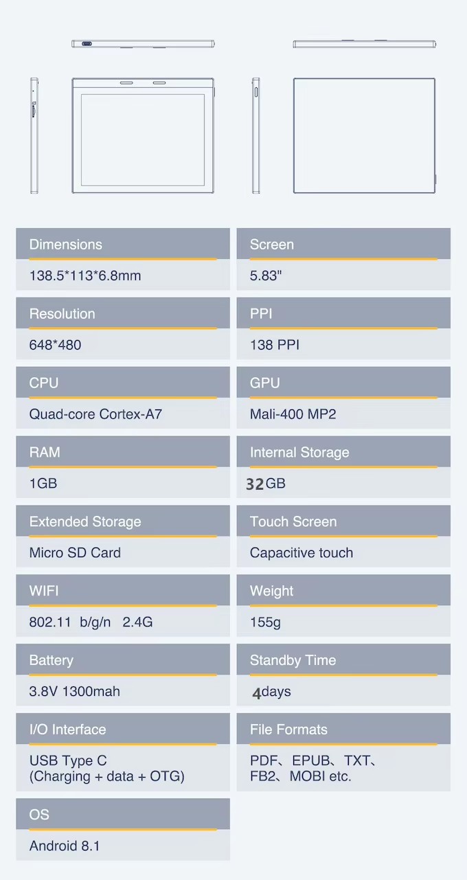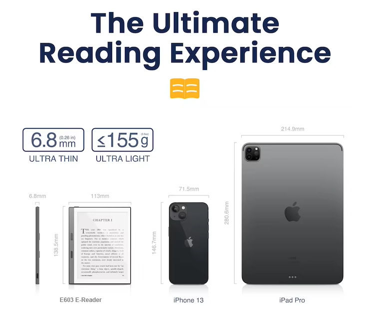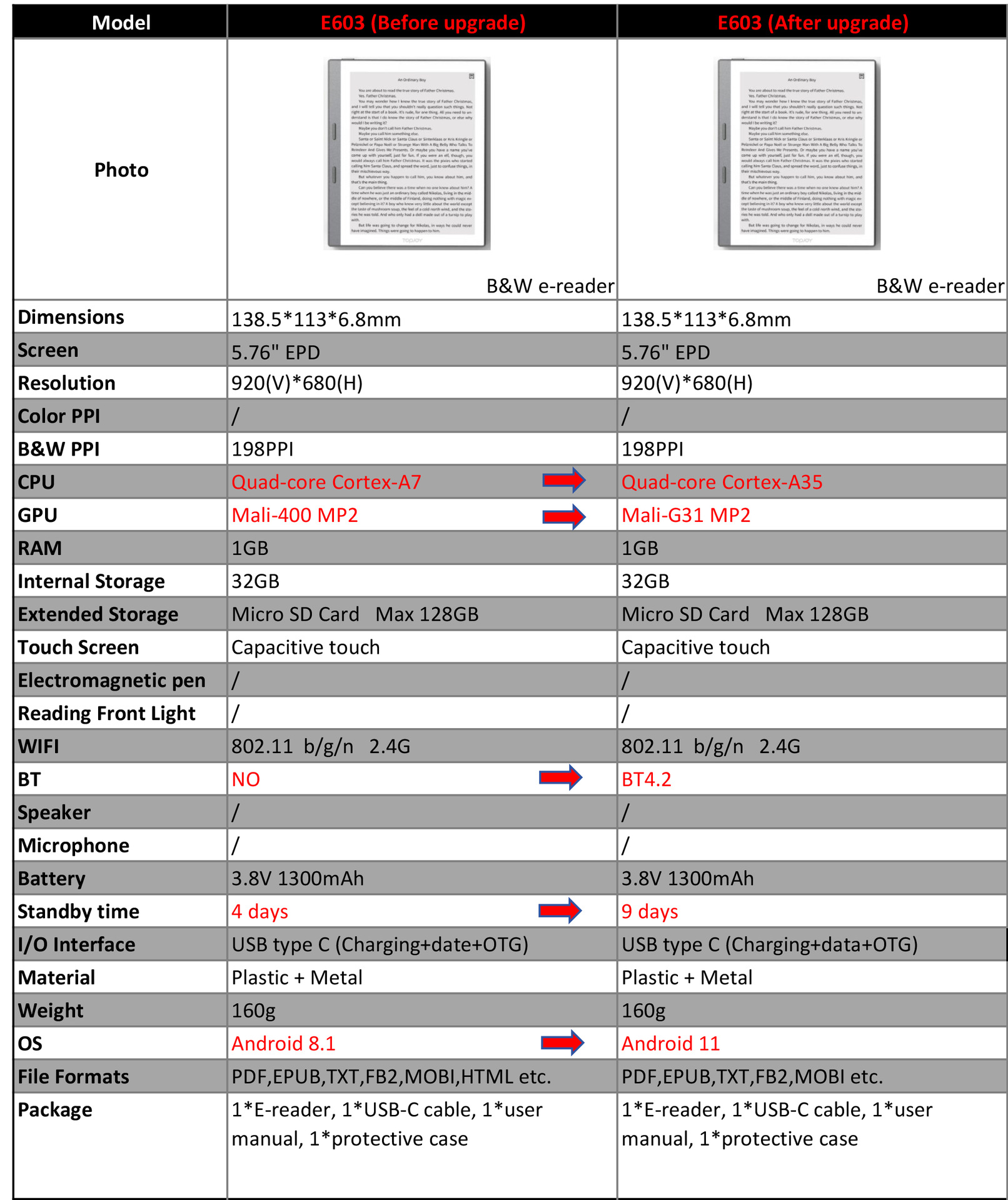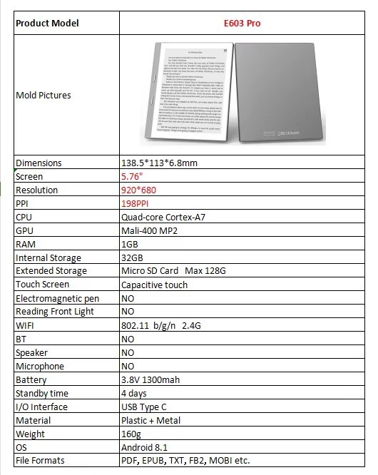 E603 алюминиевый сплав 6 дюймов высокое разрешение 198Ppi электронная книга 1+32г с сенсорным экраном