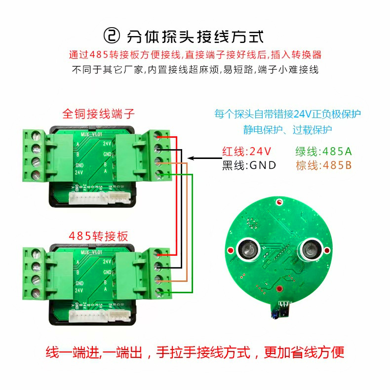 - 探测器:RVV20.5+RVSP20.5 网线,手拉手连接,末端需跳线帽。