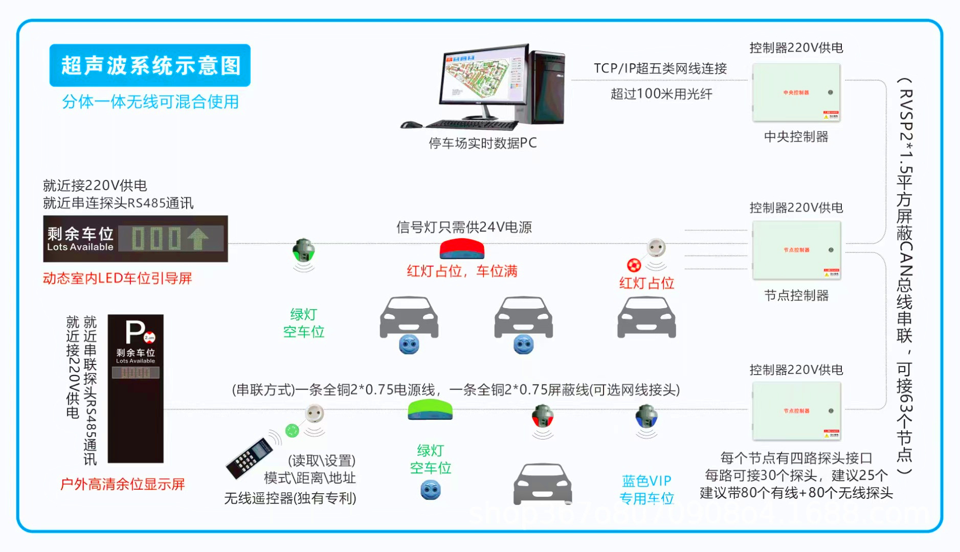 - 探测器与指示灯分离,适应非标车位(如超长车位),安装灵活且美观。