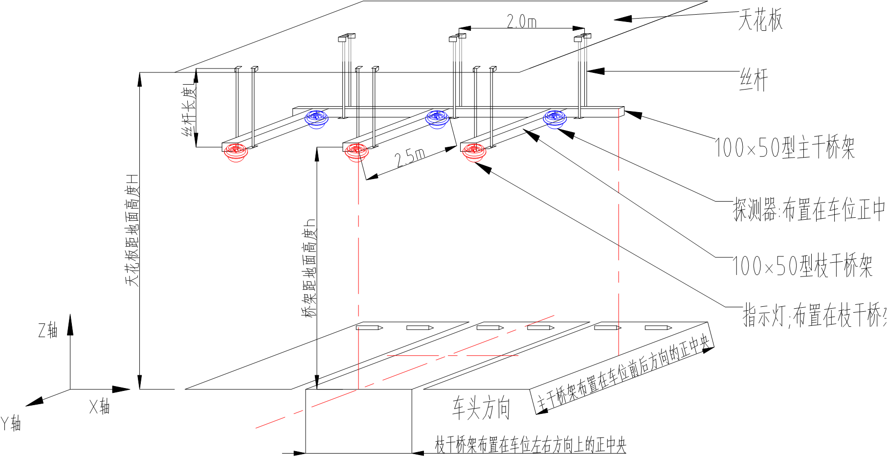- 指示灯安装于车位正前方,避免立柱遮挡。