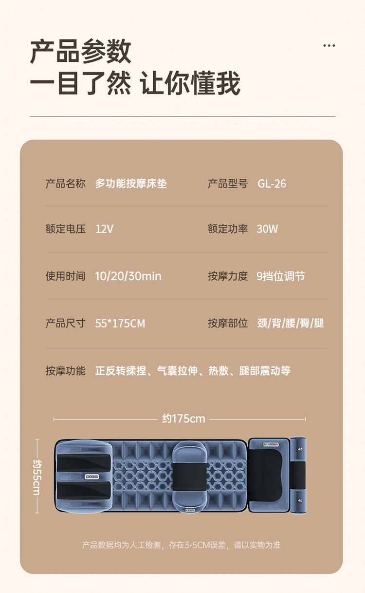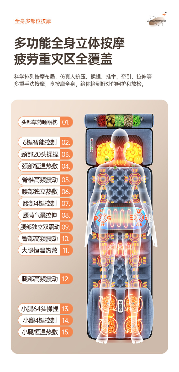 Кросс-бордерный массажный матрас для шеи и поясницы многофункциональный складной массажер с подогревом для дома, кресла, подушка, плед