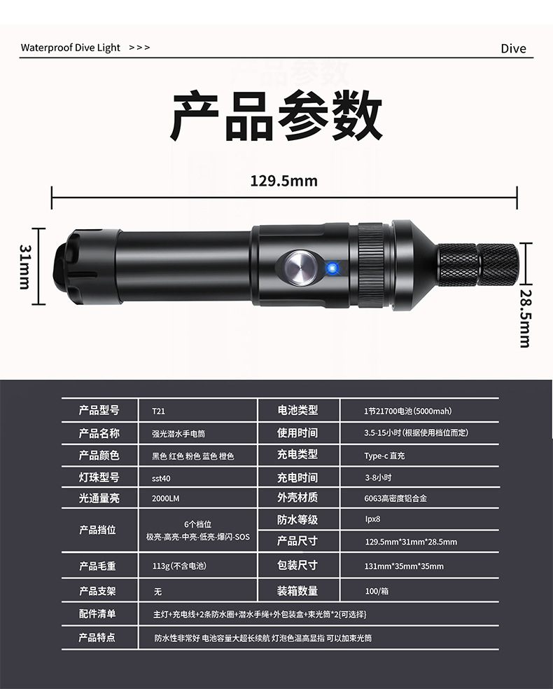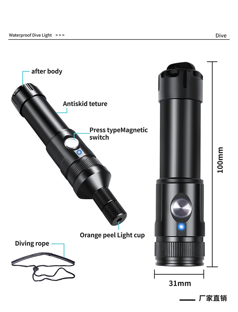 Специальный фонарь для дайвинга, мощный свет, перезаряжаемый, заполняющий свет, подводный поисковый свет, макрофотография, водонепроницаемая батарея
