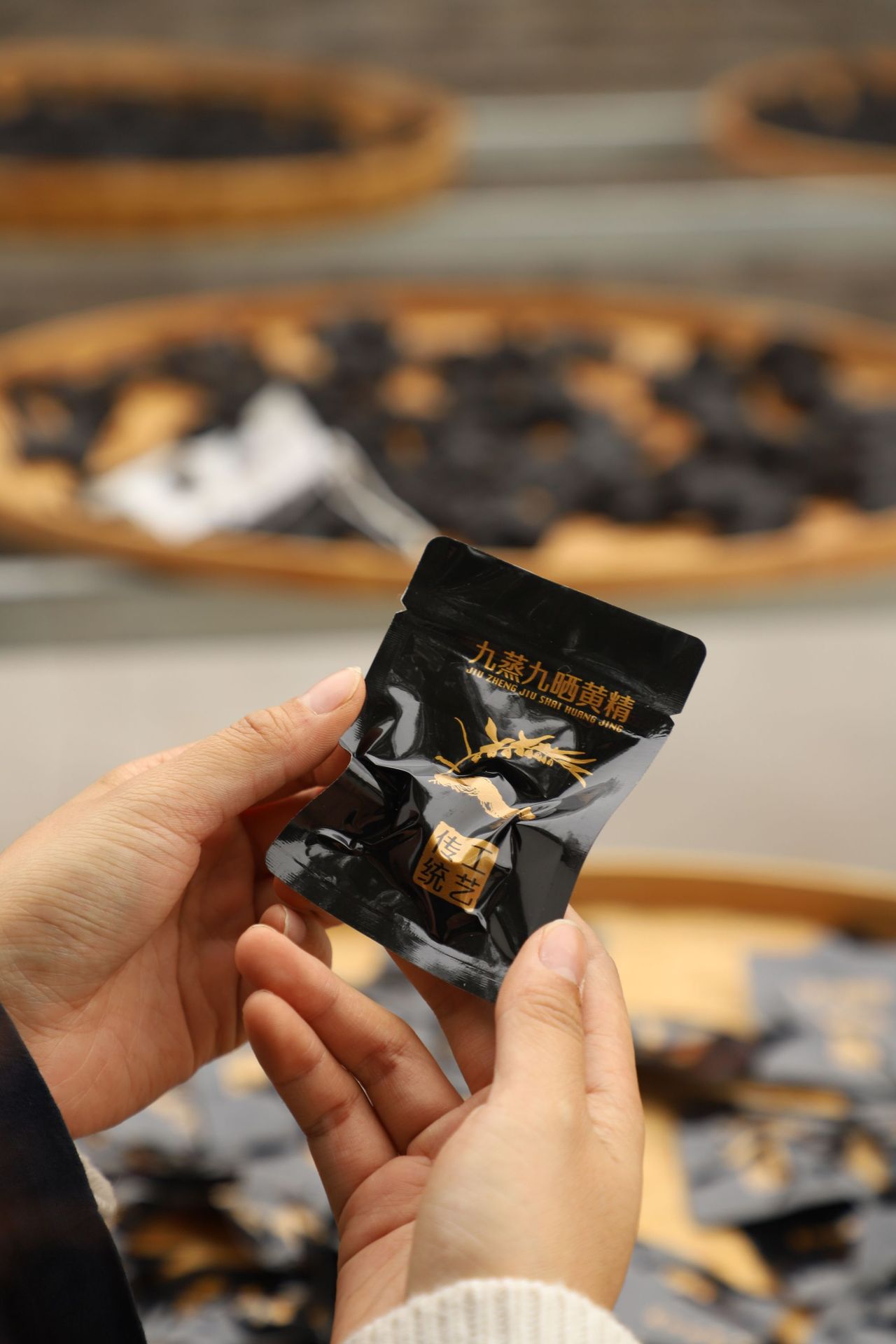 Полигона́тум в индивидуальной упаковке, девять приготовленных на пару, девять сушеных плодов полигона́тума, мясо полигона́тума Цзюхуа, мягкое и клейкое, готовое к употреблению, без добавок
