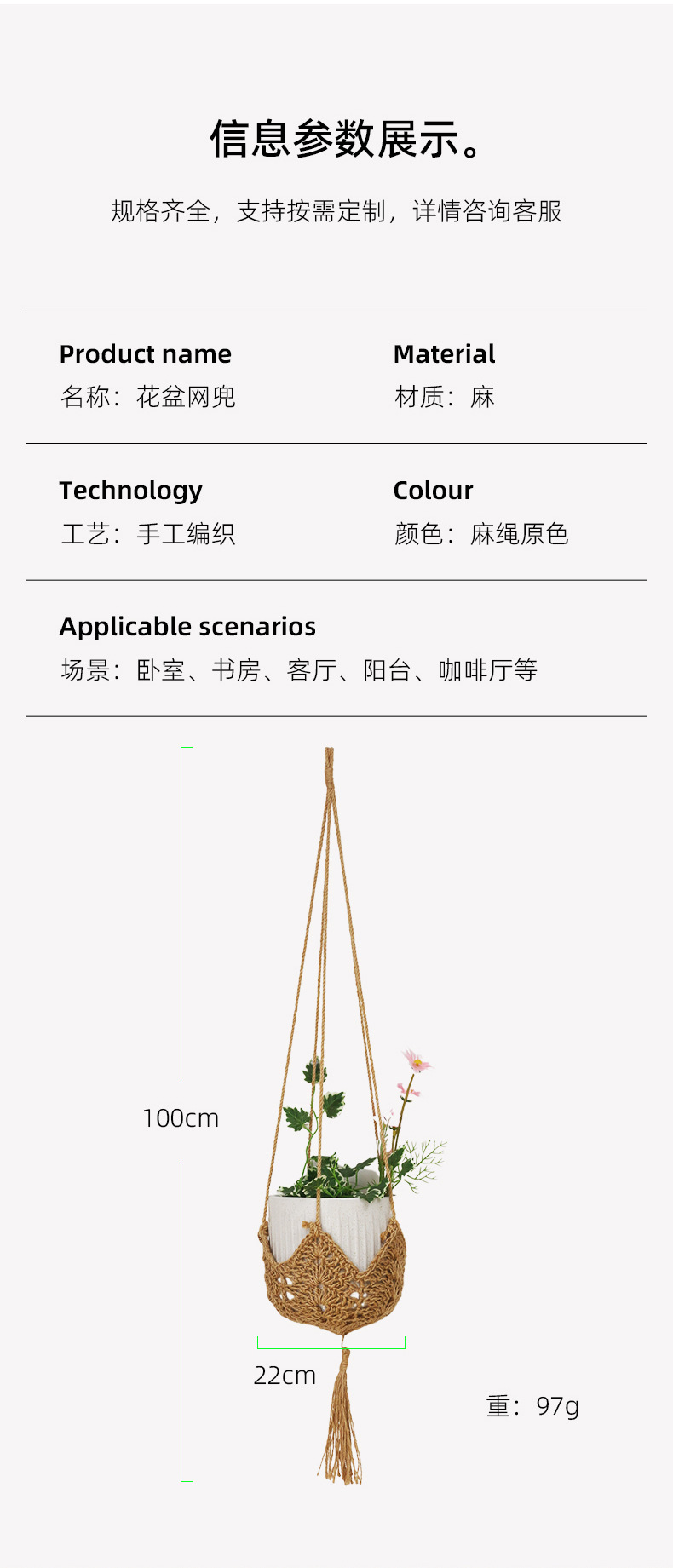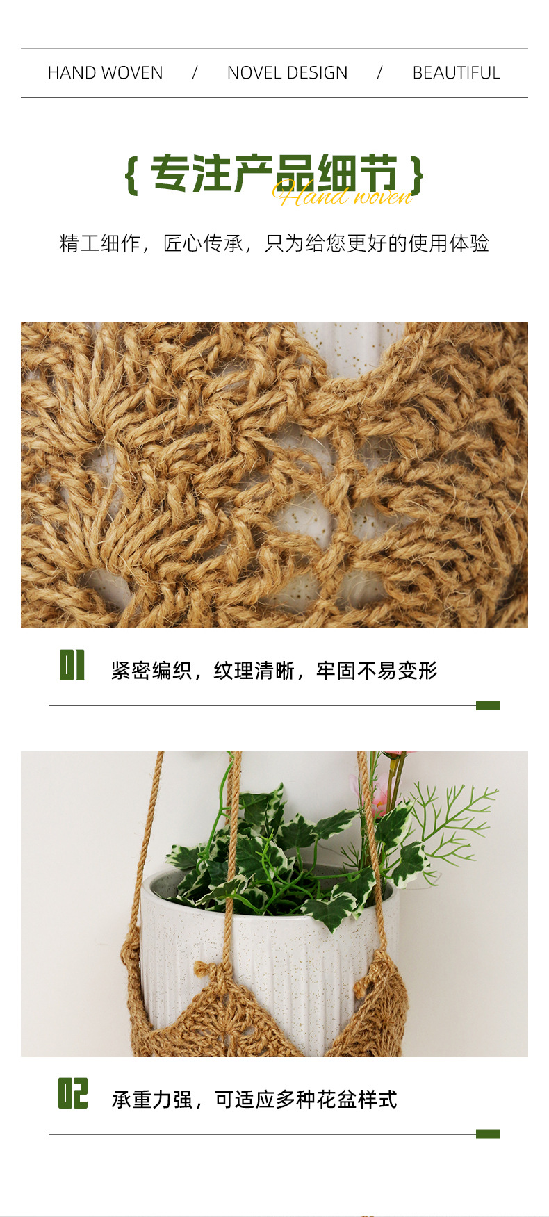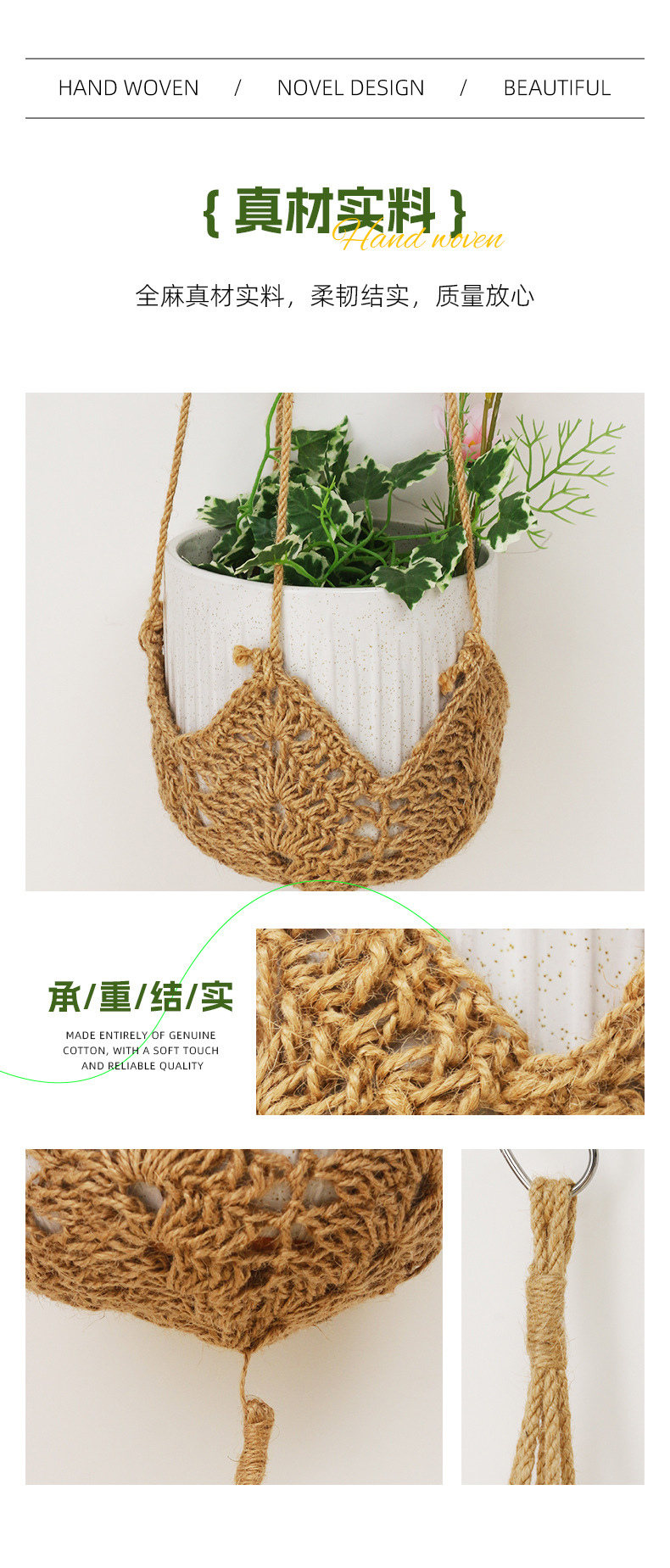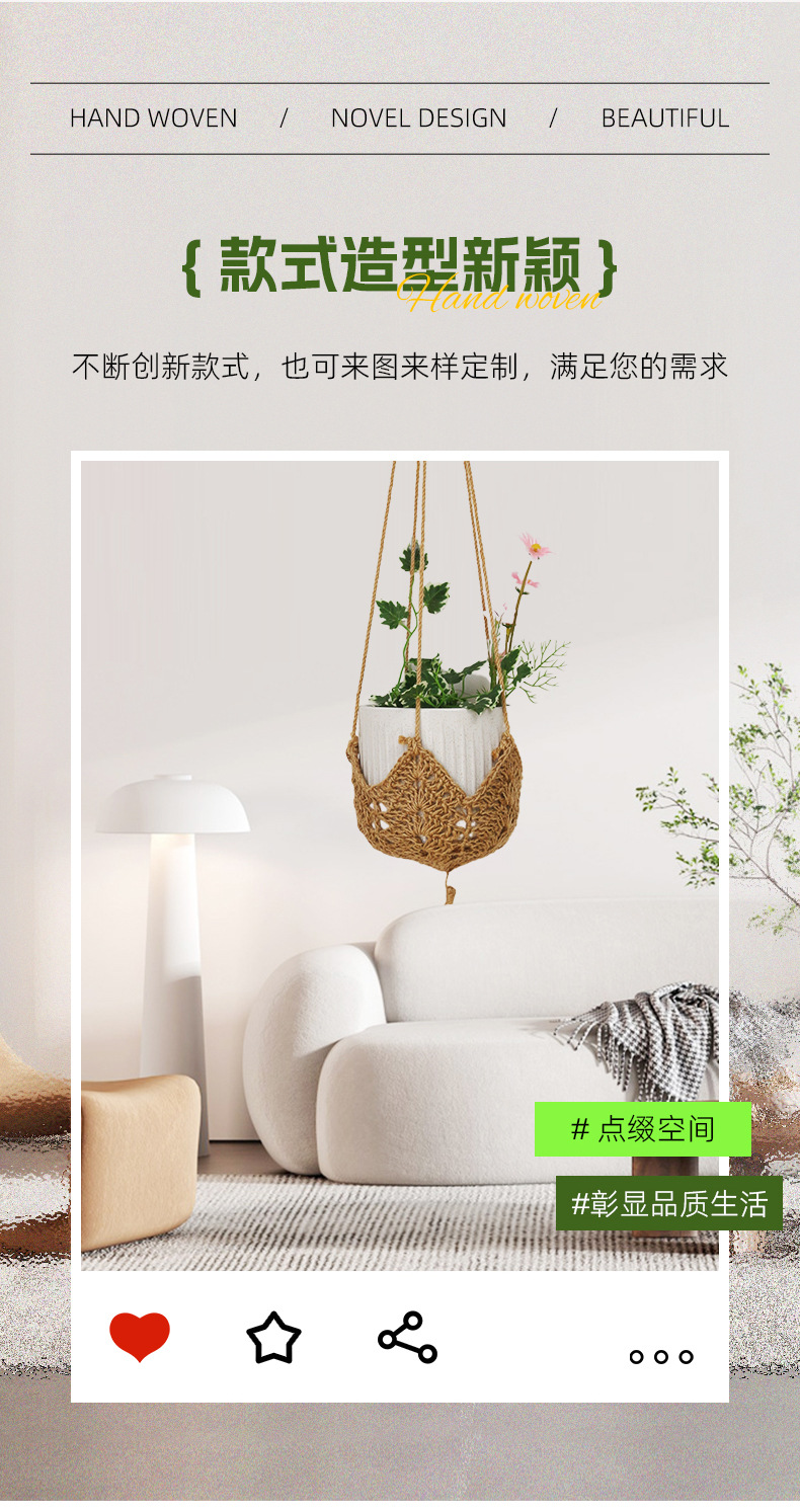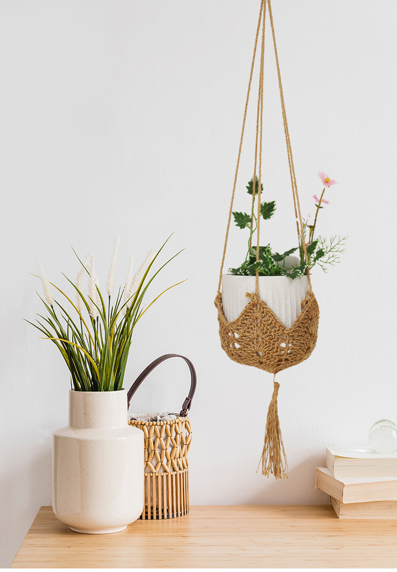 новый плетеный карман для цветочного горшка из конопляного шнура, подвесная корзина для цветов для дома и улицы