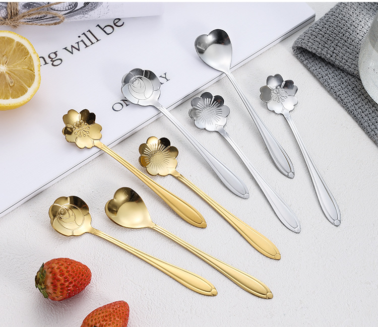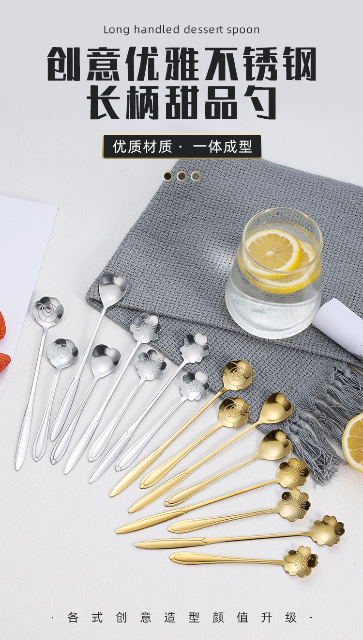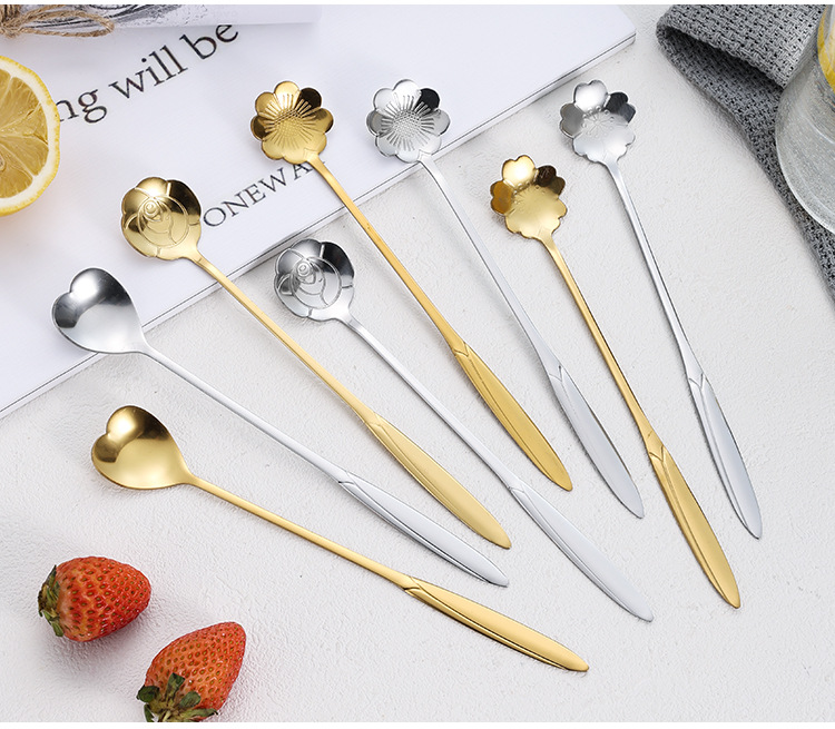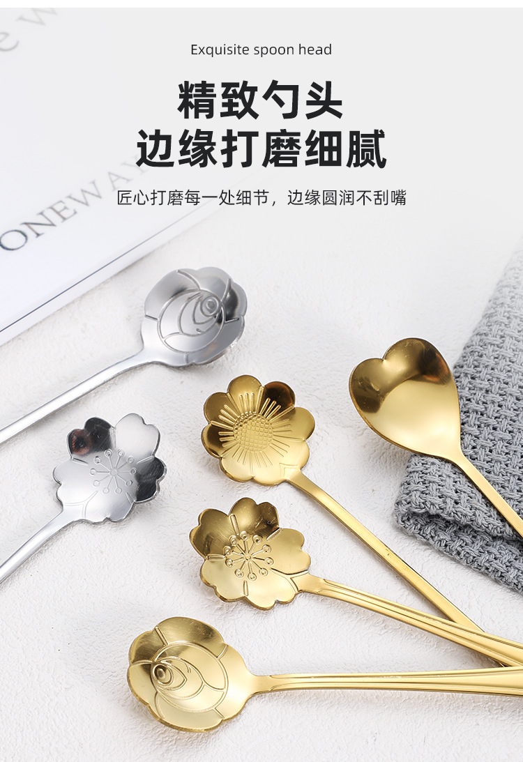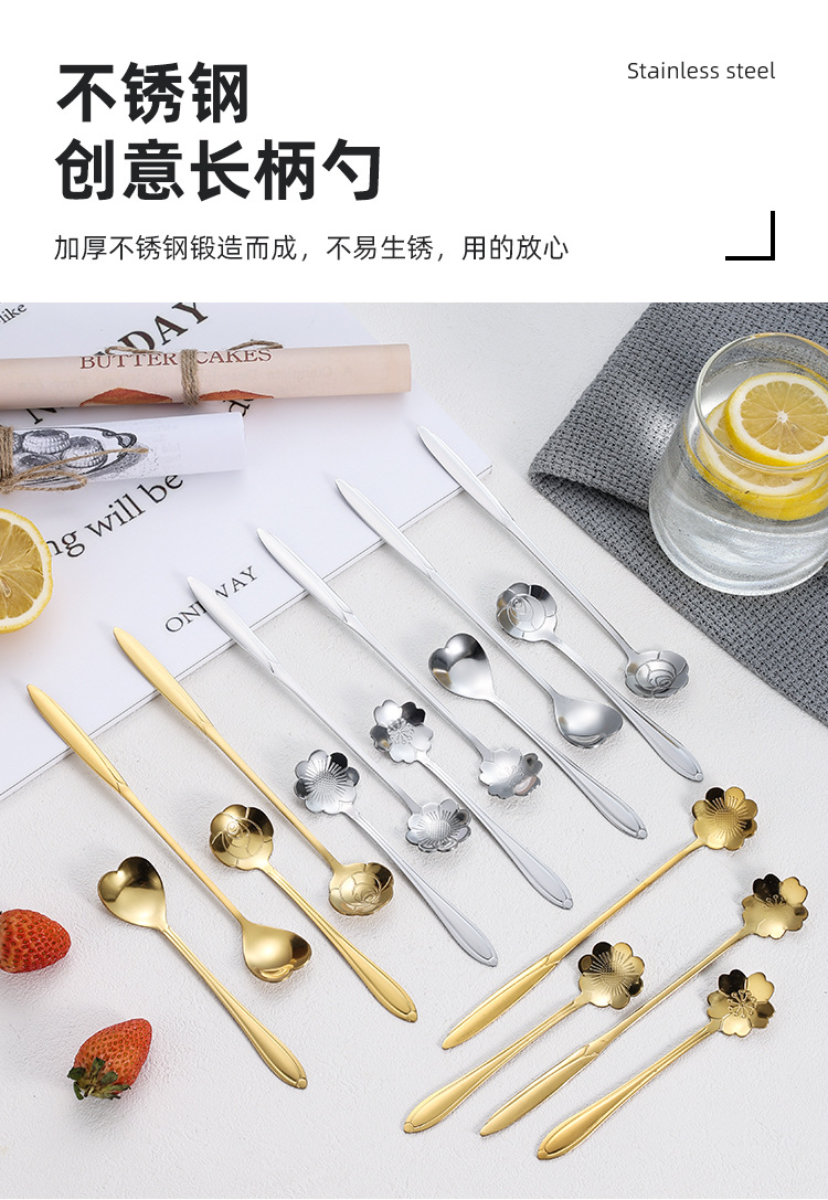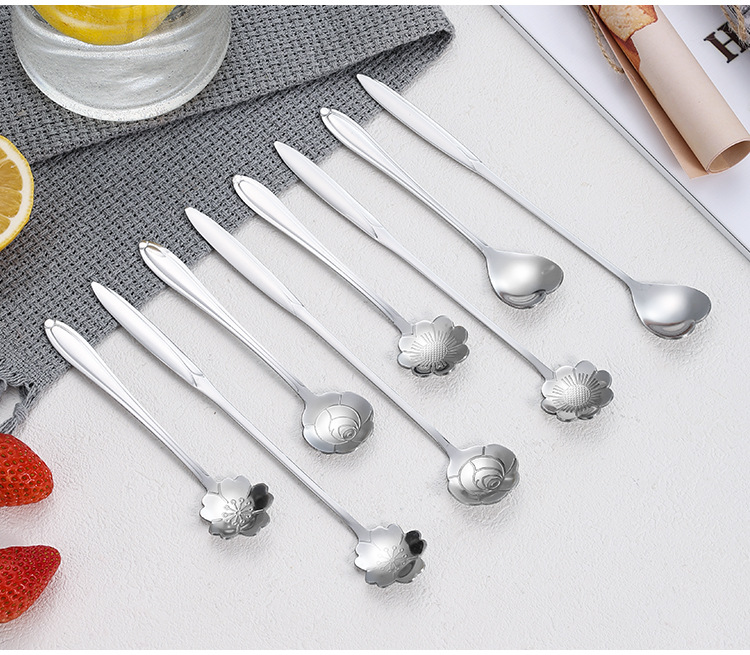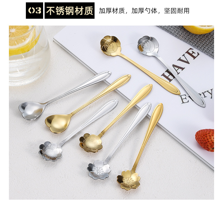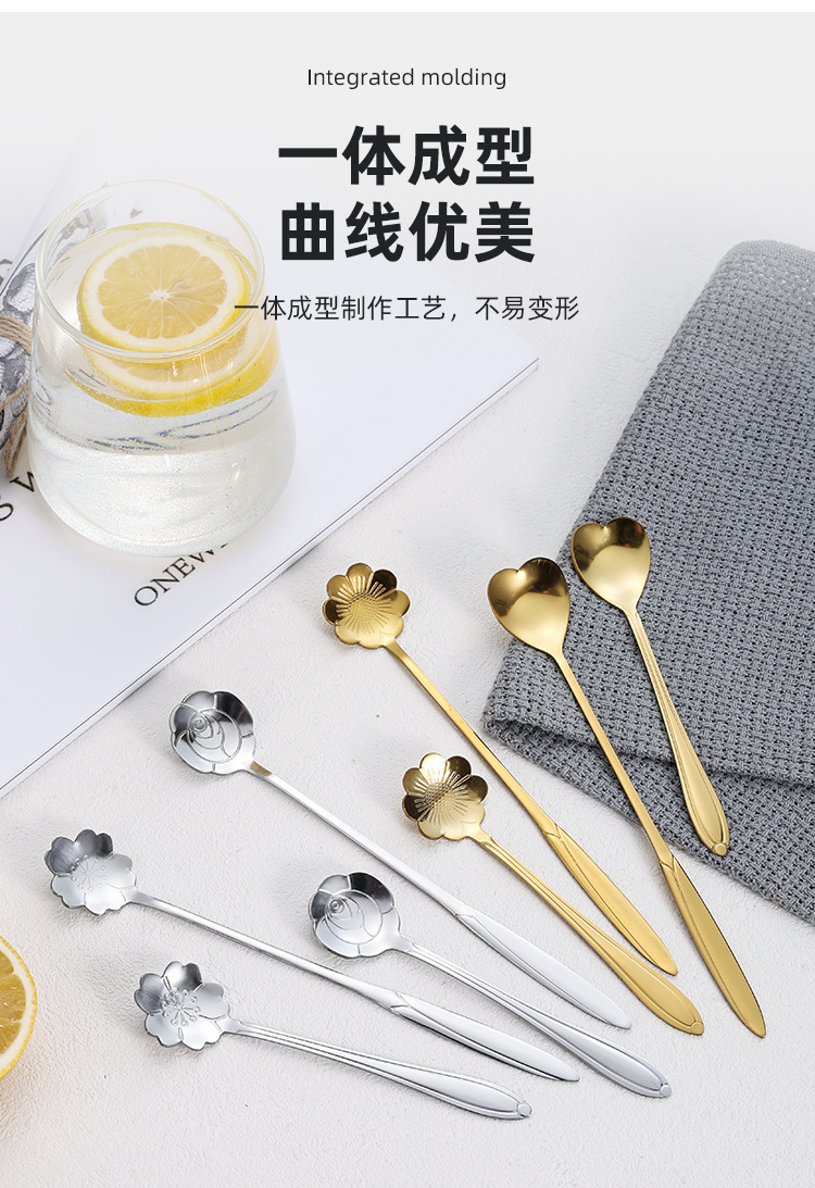 Ложка из Нержавеющей Стали Цветущей Вишни Длинная Ручка Чашка Смешивания Ложка Высокой Цветовой Ценности Кофейная Ложка Ложка Птичьего Гнезда Ручной Подарок Ложка