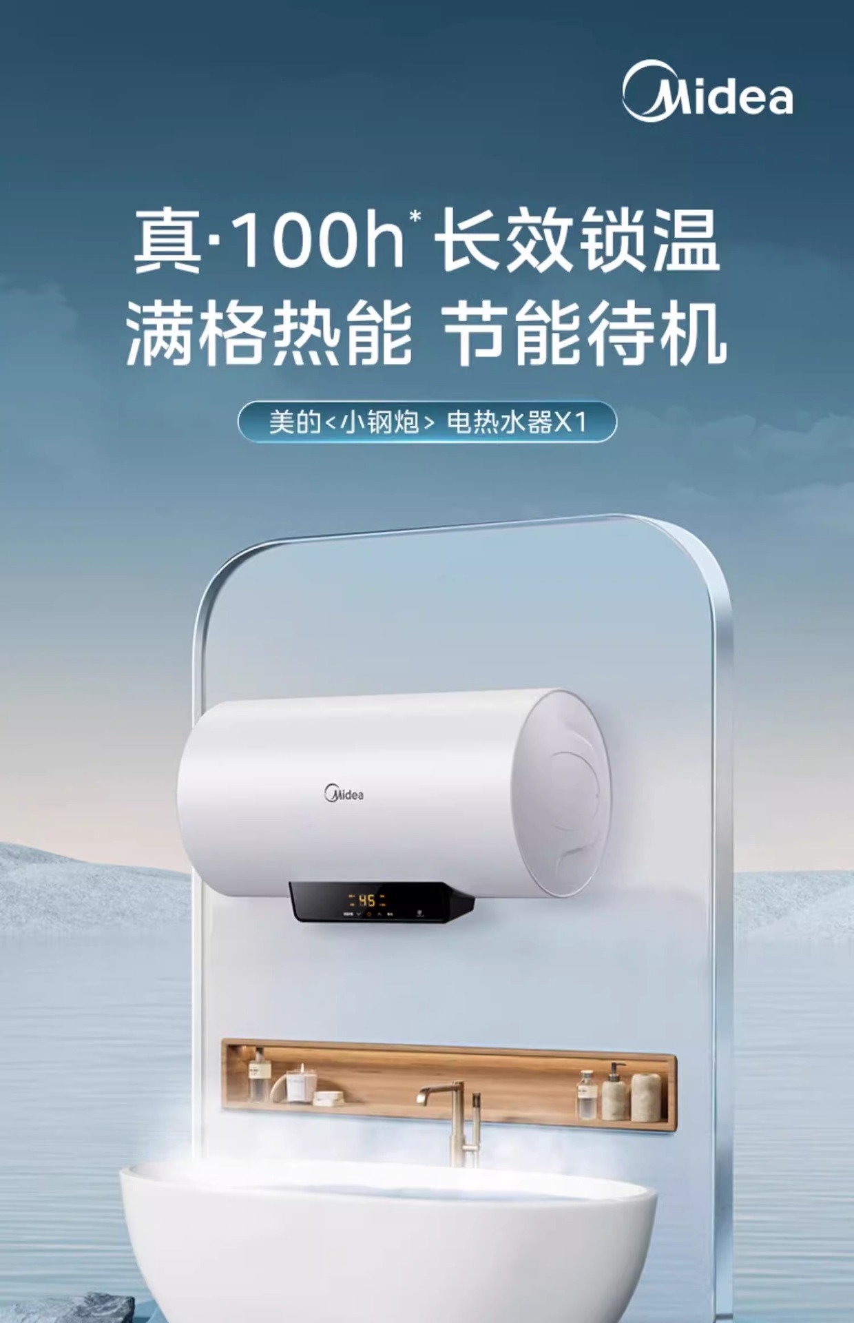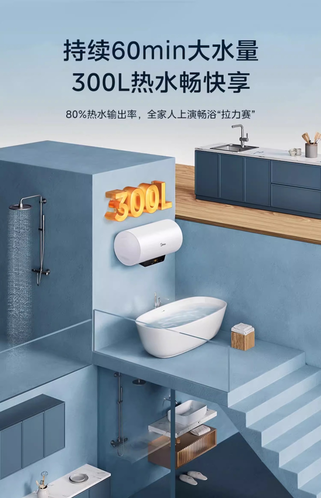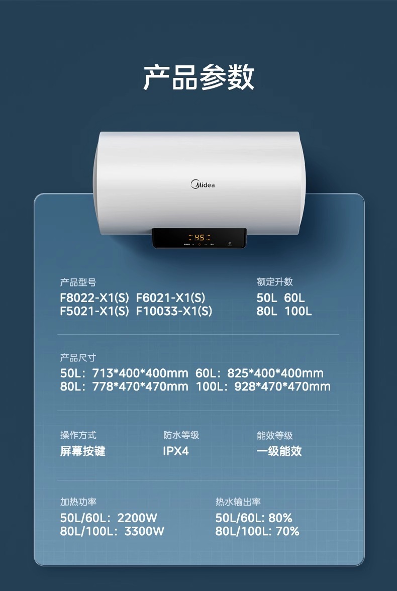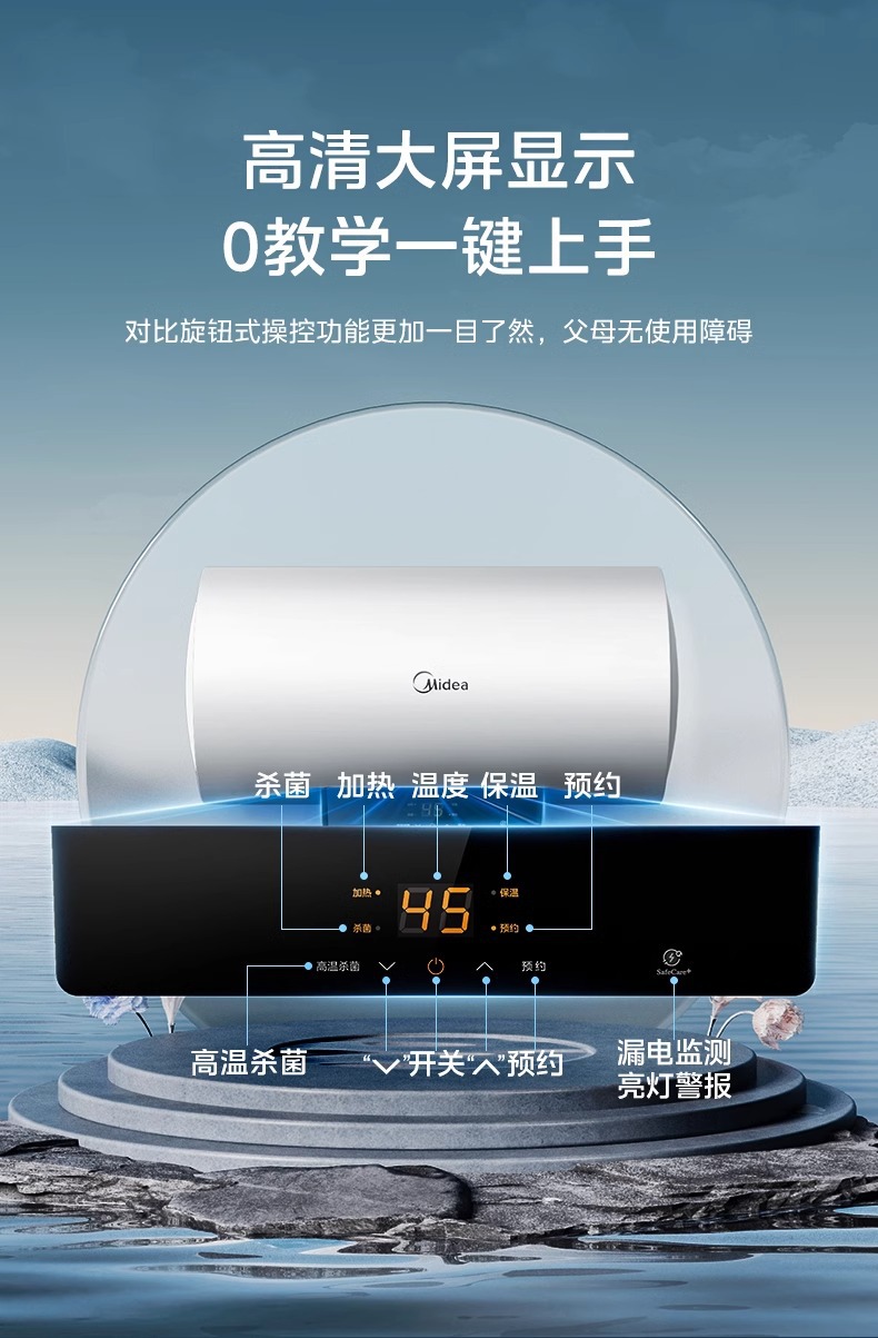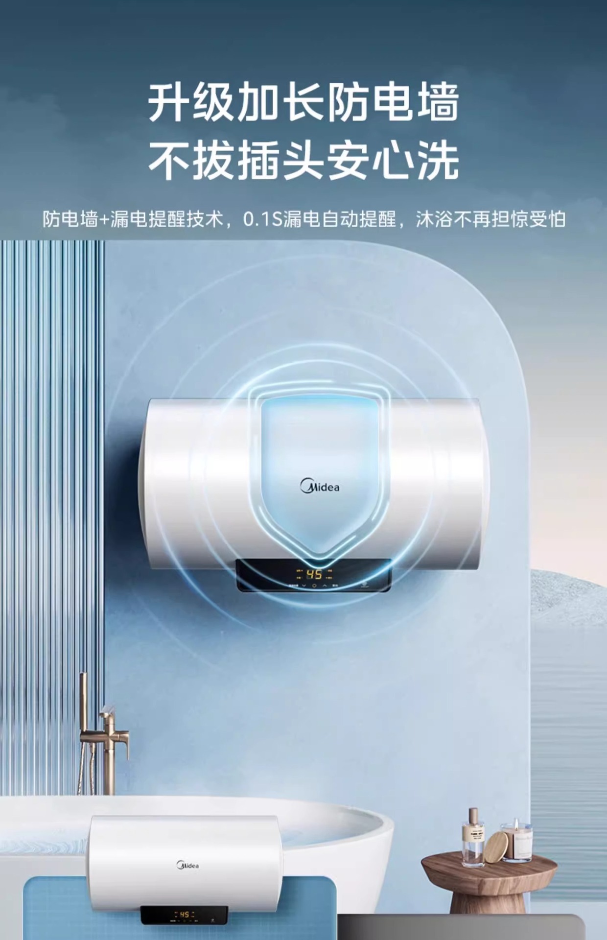 Электрический водонагреватель Midea 60 литров, бытовой, класс I, энергосбережение, 50 литров, накопительный, быстрое нагревание, флагманский магазин X1