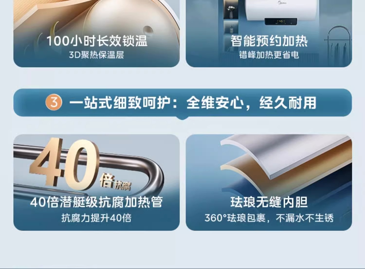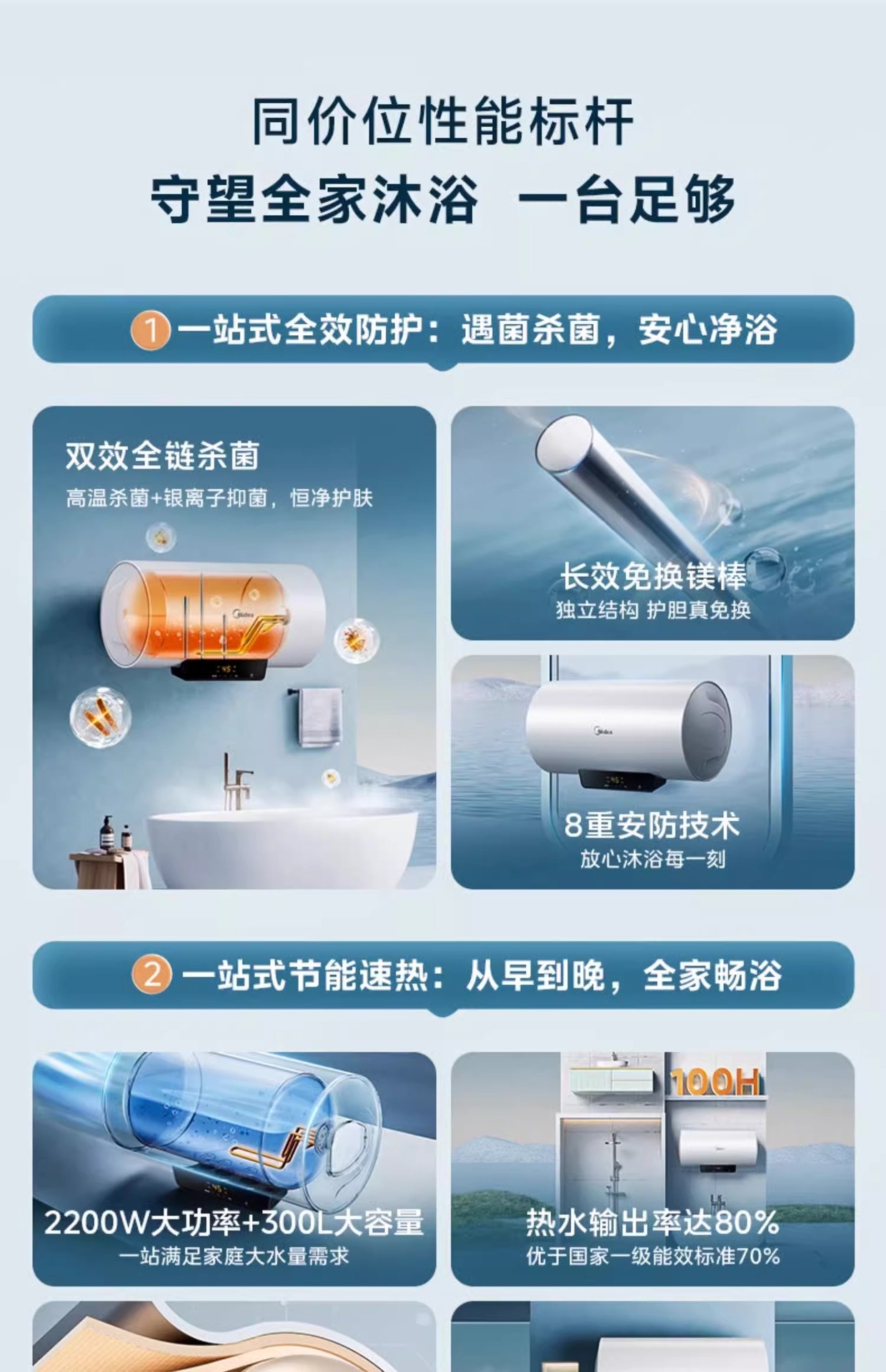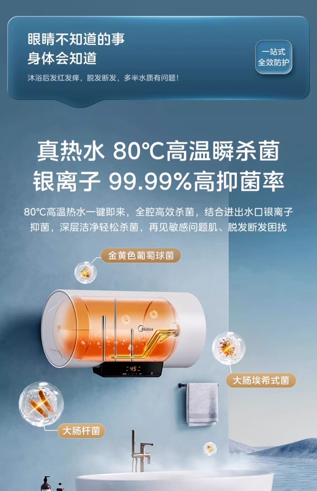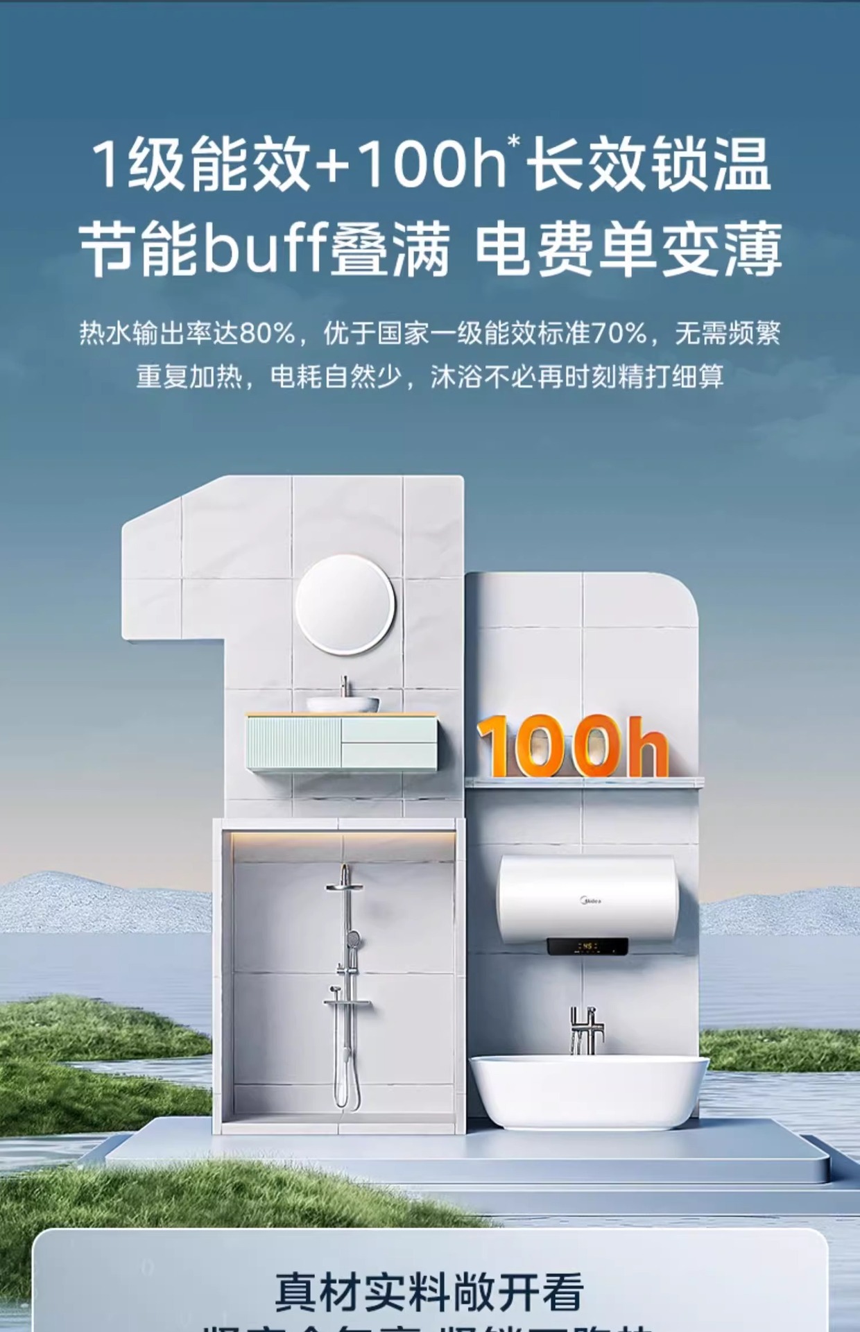 Электрический водонагреватель Midea 60 литров, бытовой, класс I, энергосбережение, 50 литров, накопительный, быстрое нагревание, флагманский магазин X1
