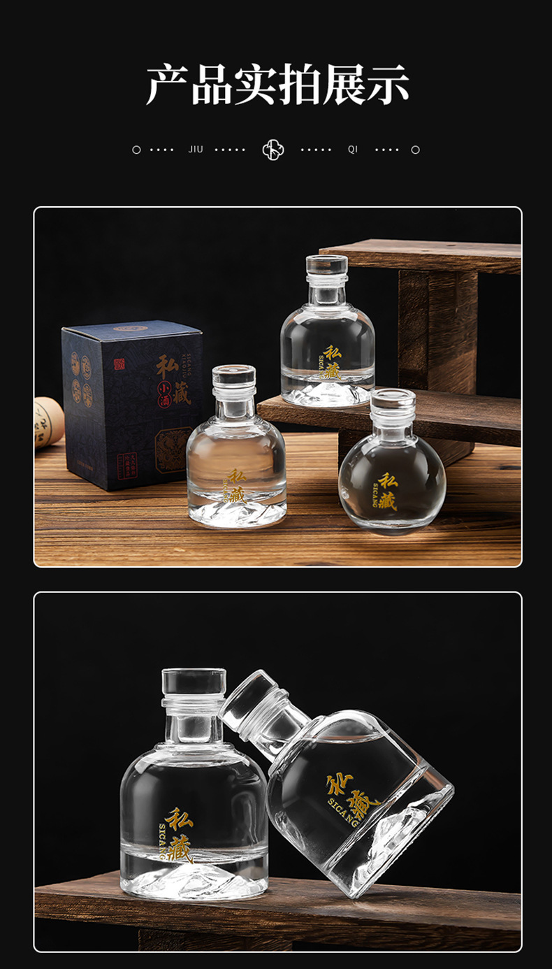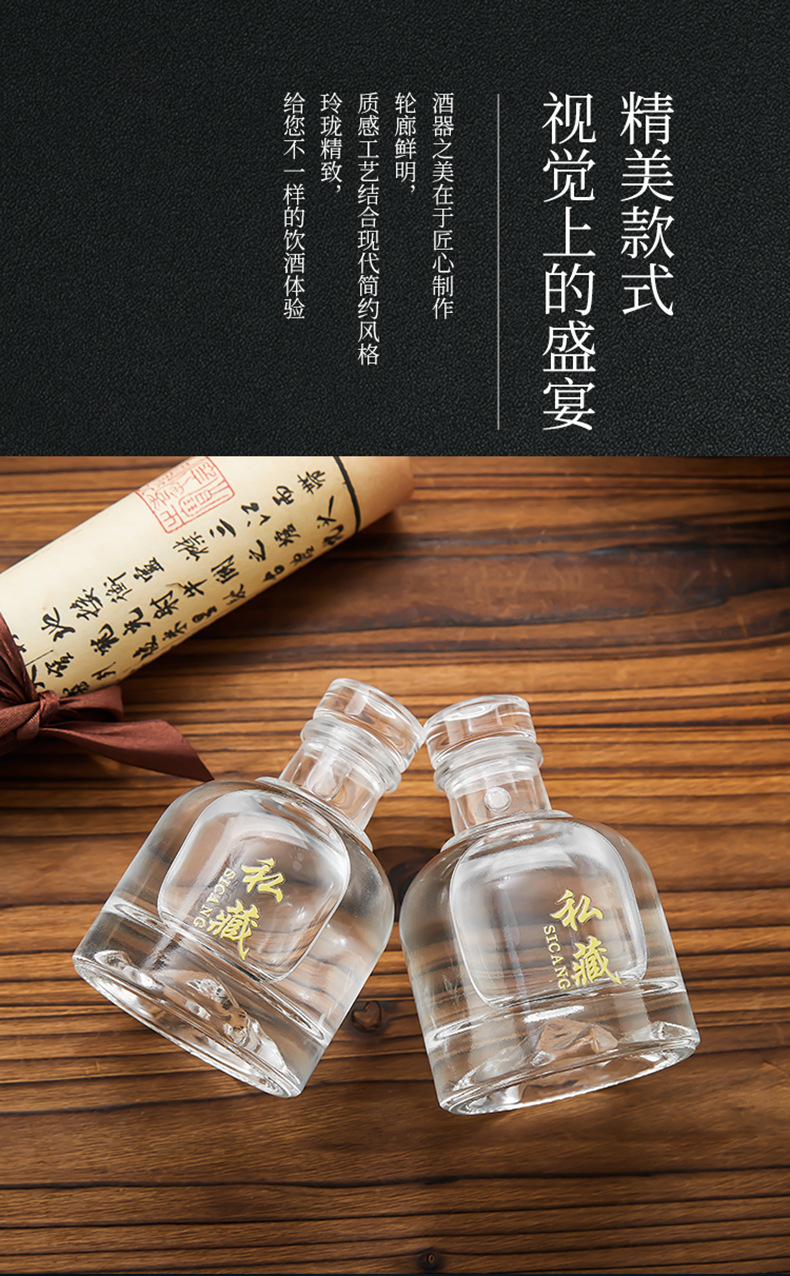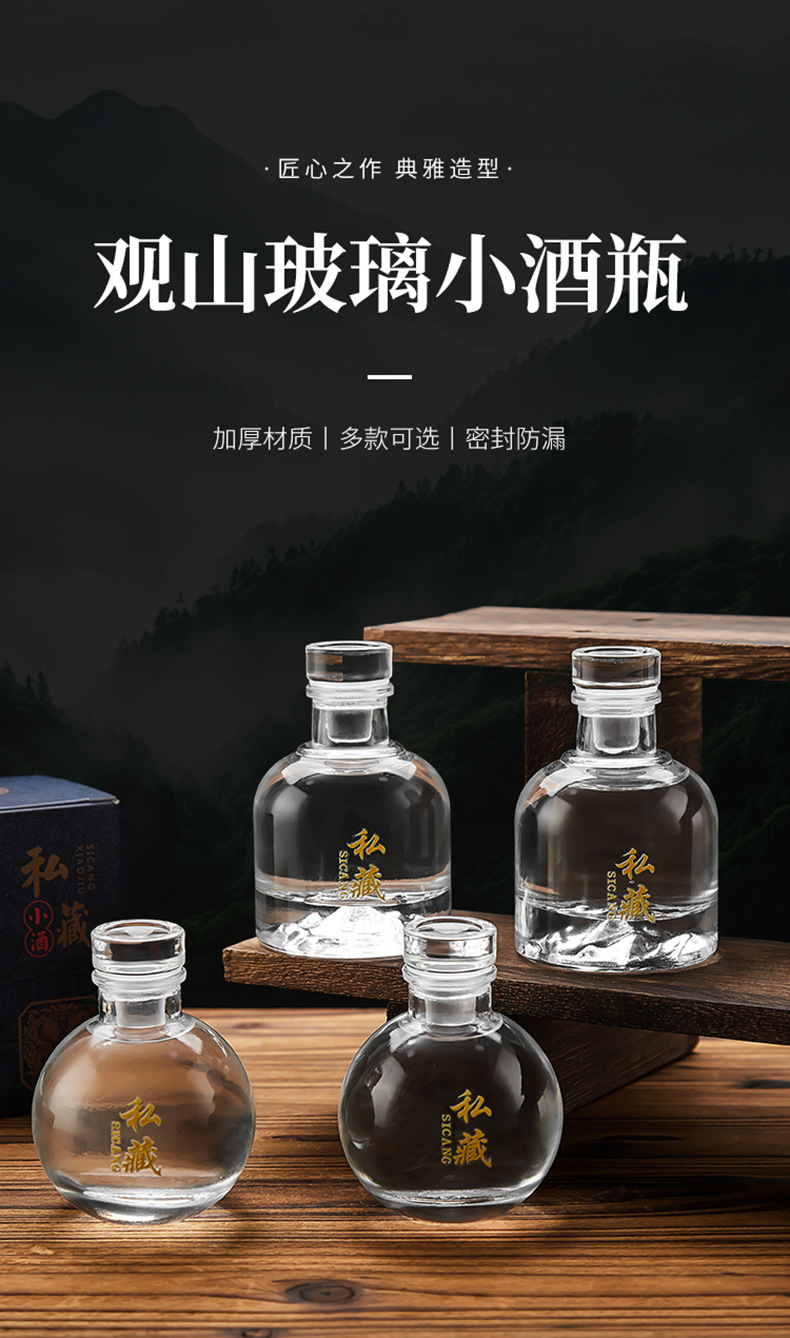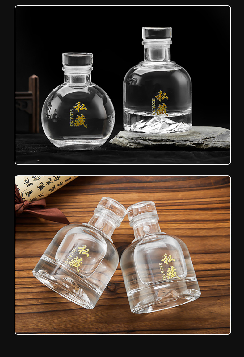 Прозрачная бутылка для белого вина, две маленькие круглые бутылки с упаковкой, пустая бутылка