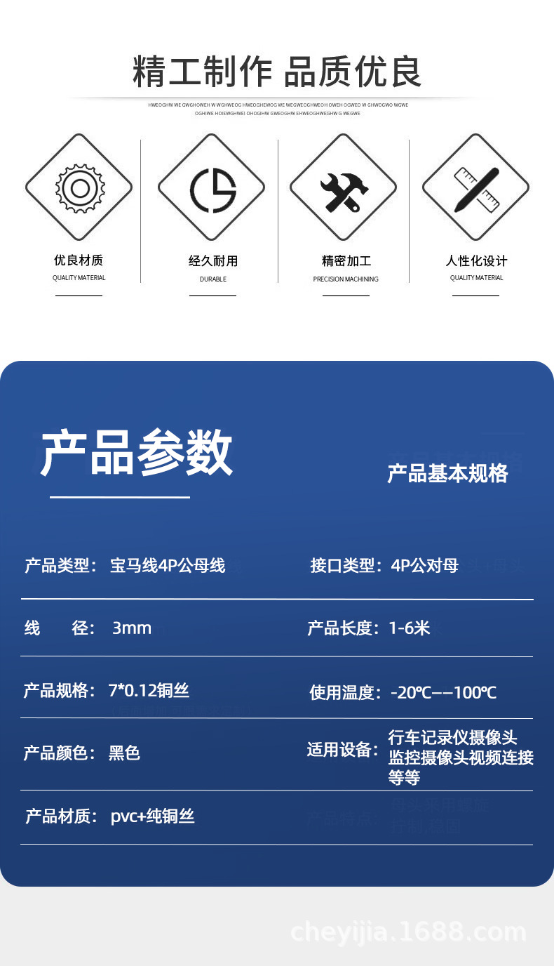 Подходит для BMW кабель male-to-female для видеорегистратора 4-канальный 4P кабель для обратной камеры видео сигнала