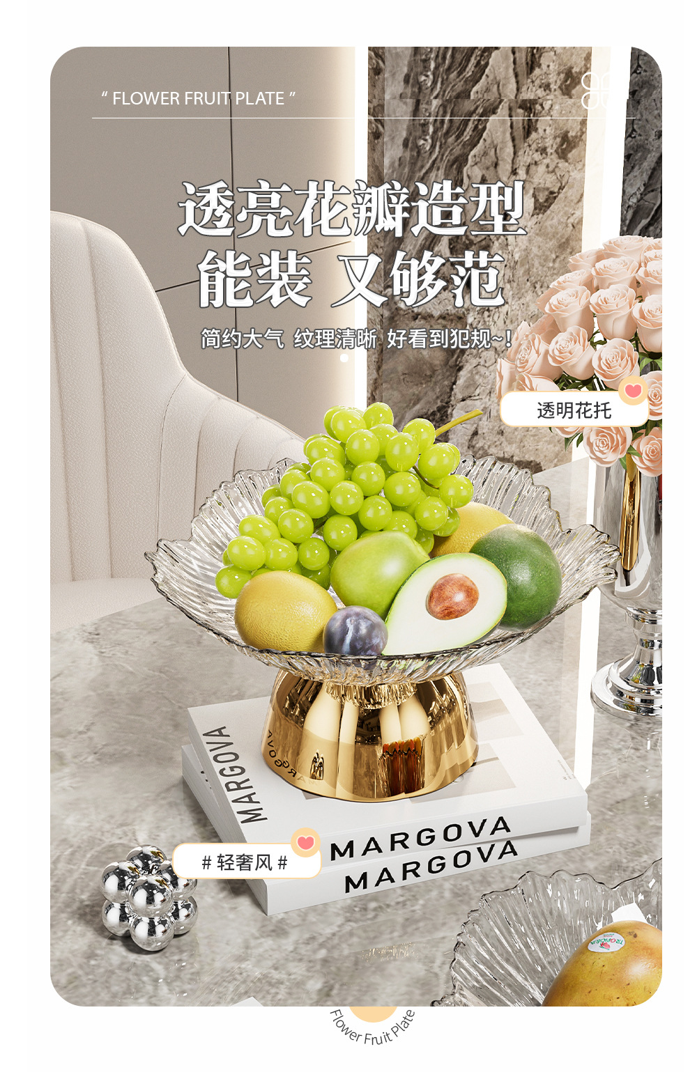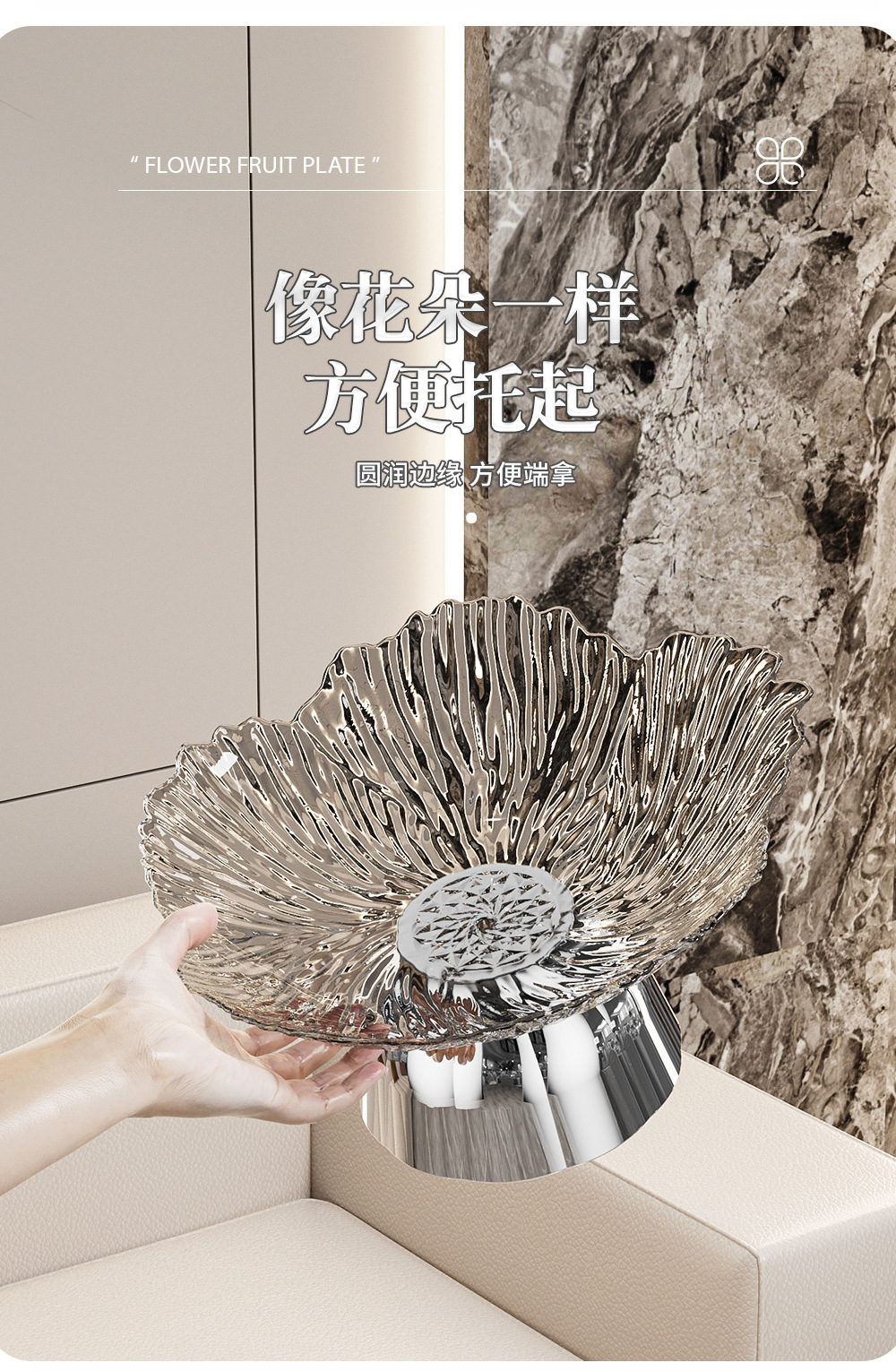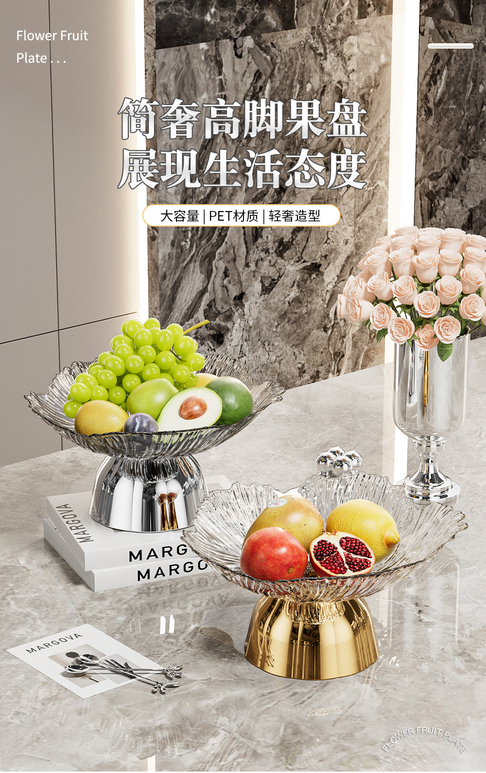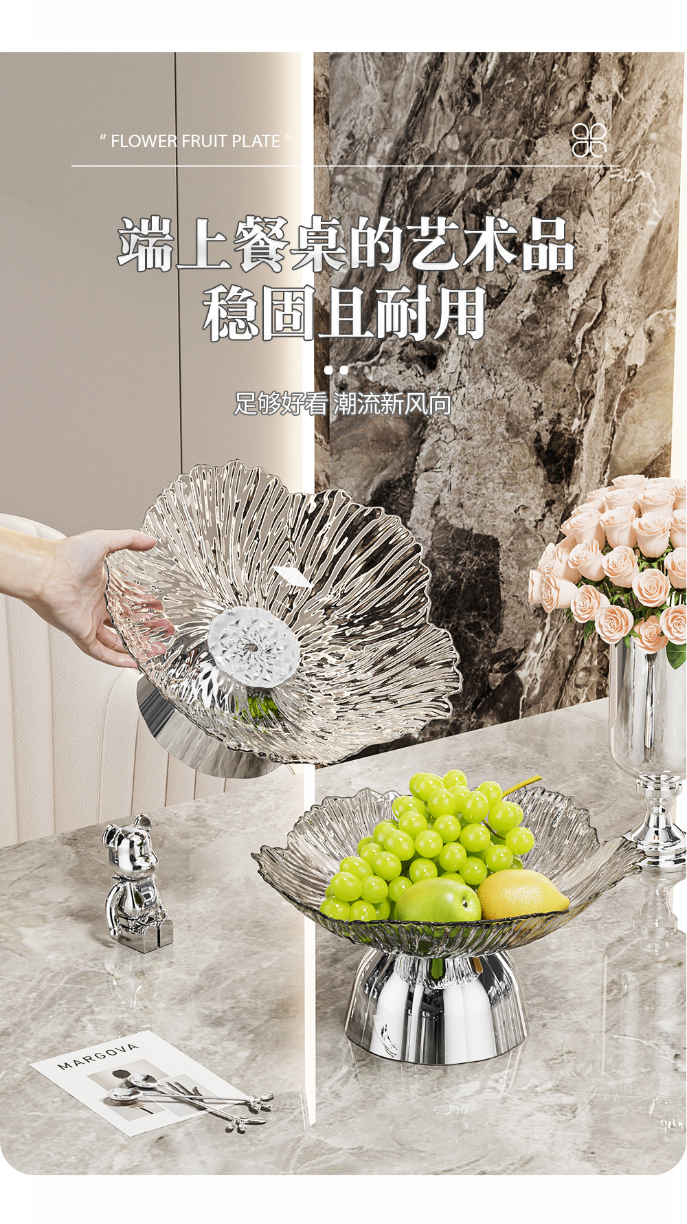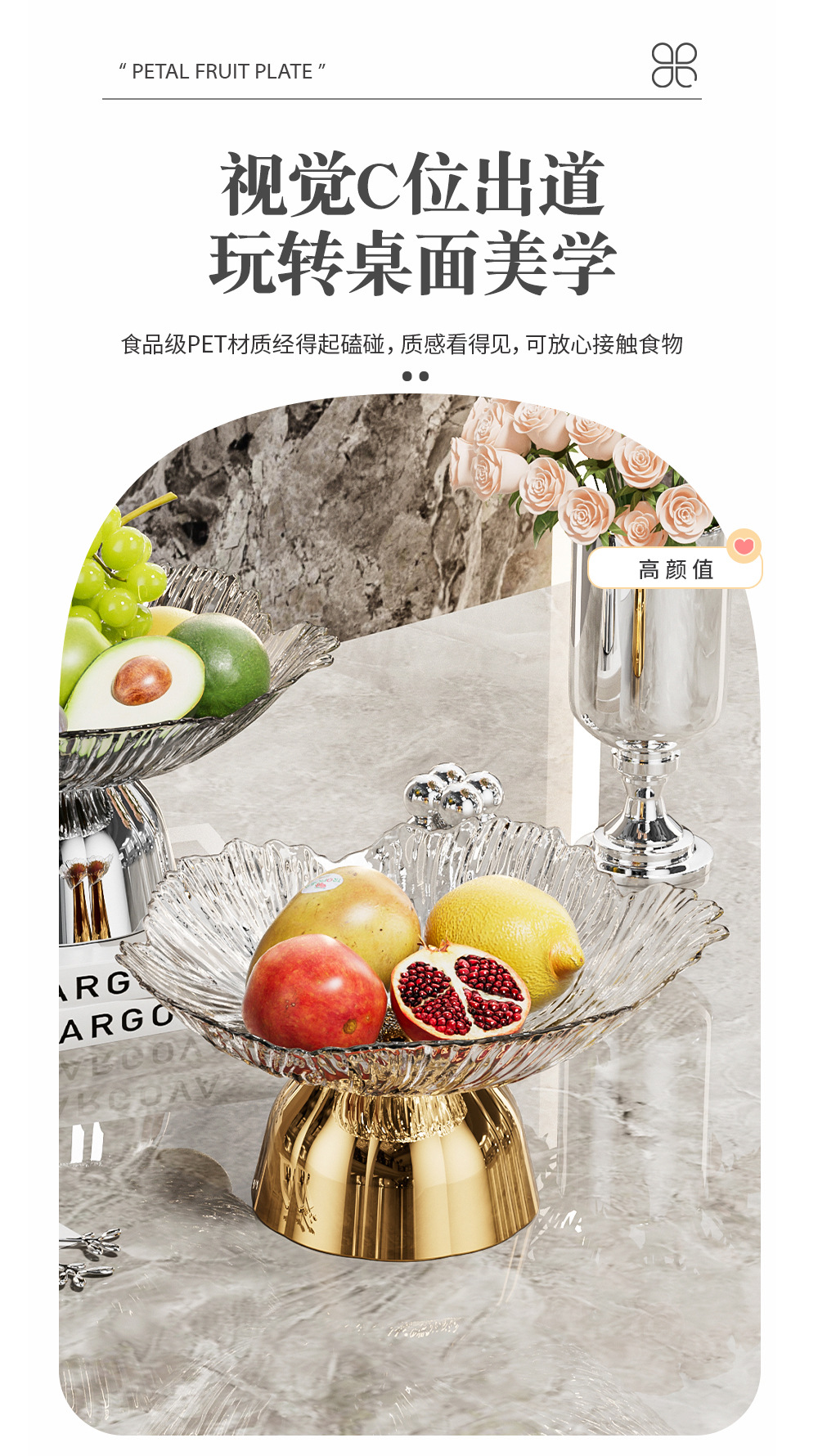 Фруктовая тарелка Light Luxury нового стиля, с высоким основанием, для закусок, для дома, гостиная, тарелка для сухофруктов, лепестковая форма