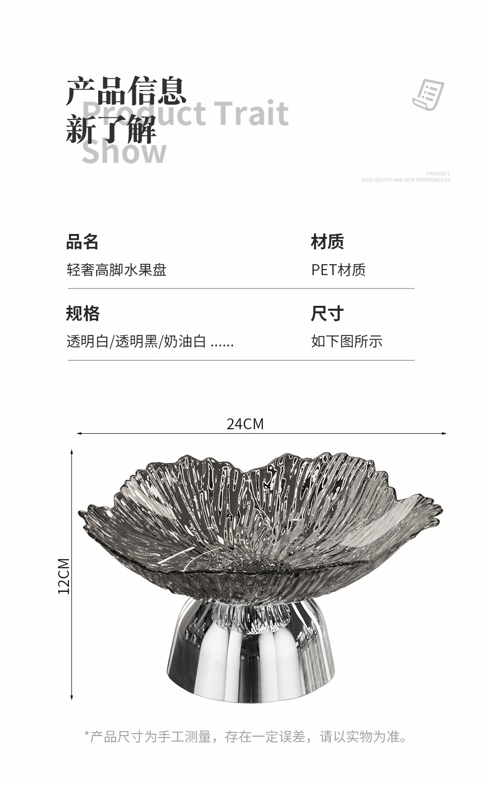 ![]() | Petal fruit plate transparent white + dark wood grain base | ¥7.5 / ≈ 91 ₽ | 999962 | 5772210668866 |