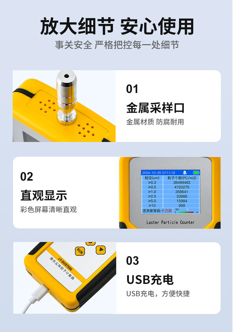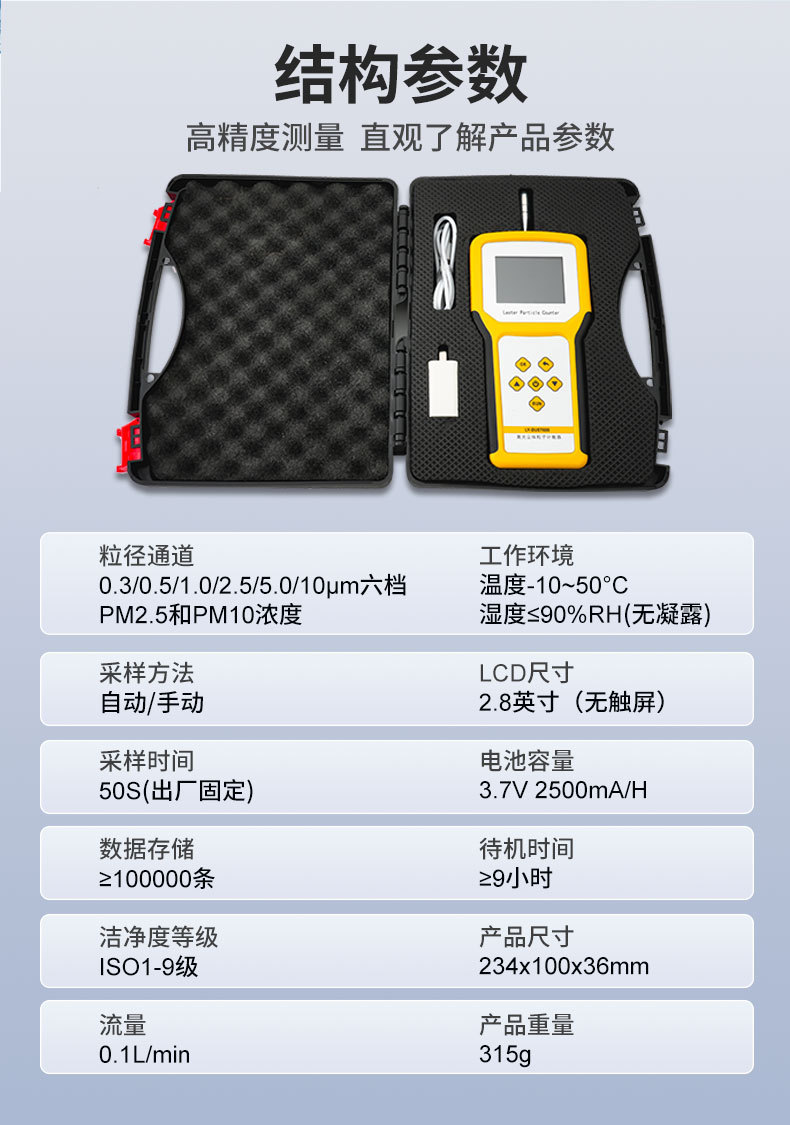 Диапазон измерений 0.3-10μm particles