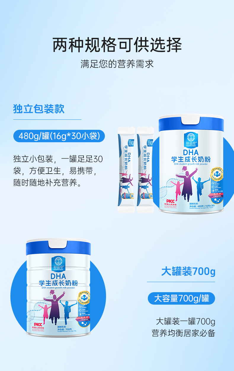Спецификации упаковки Student growth milk powder [400g independent bag]