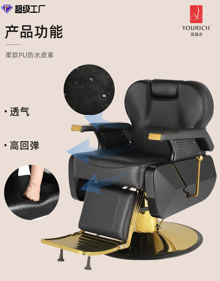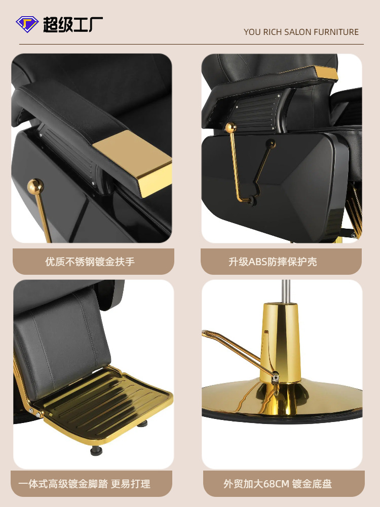 Металлическое парикмахерское кресло с золотым покрытием для стрижки, вращающееся кресло для парикмахерской