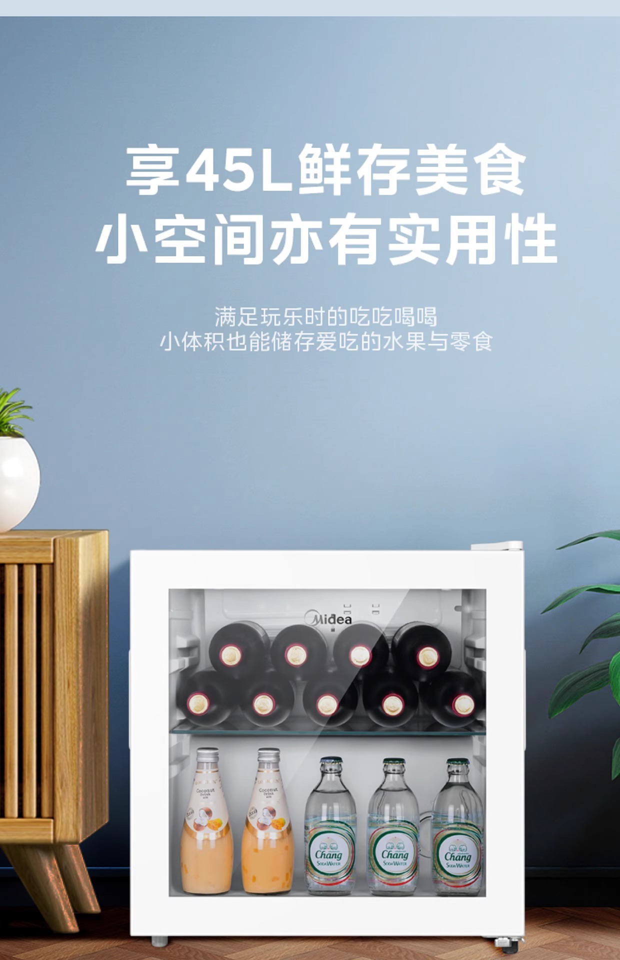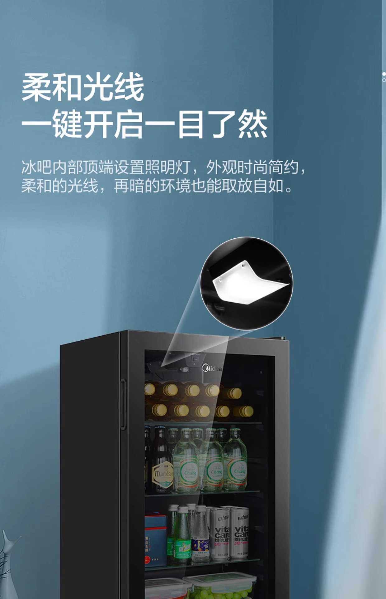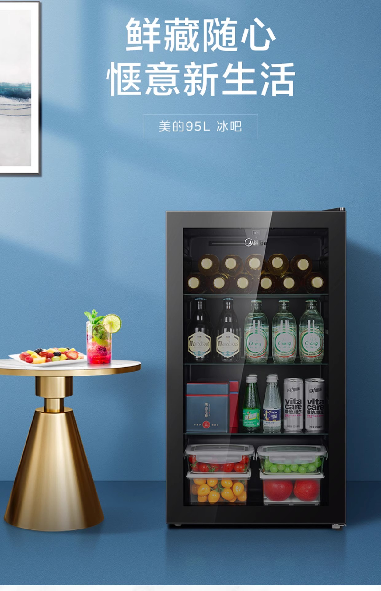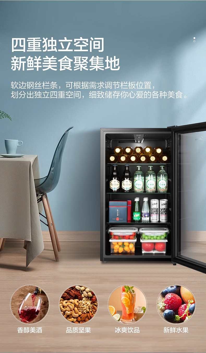 Midea Ice Bar Домашний 95L Холодильный шкаф для вина Косметический шкаф E-Sports Гостиничный шкаф для напитков Первый класс Энергосбережение