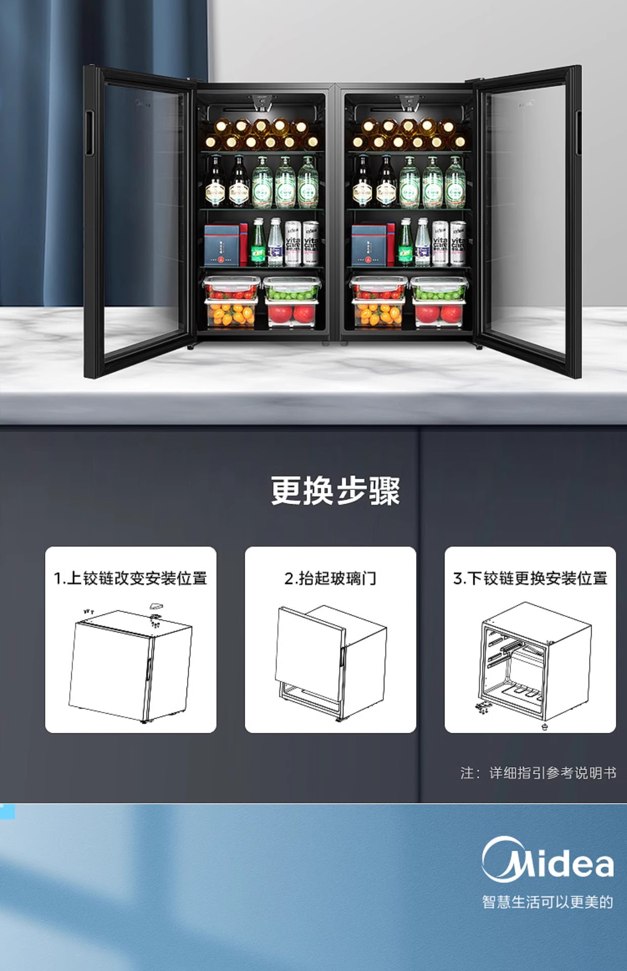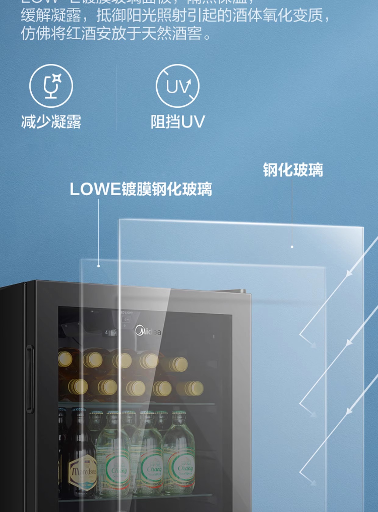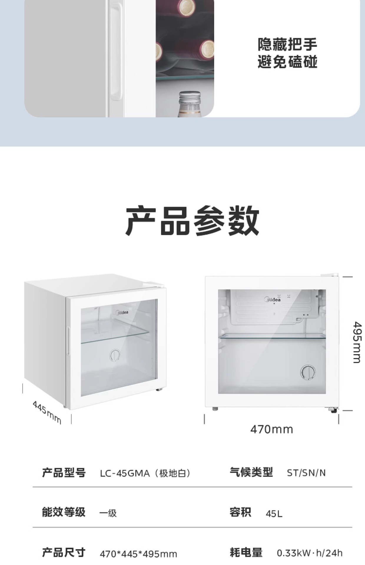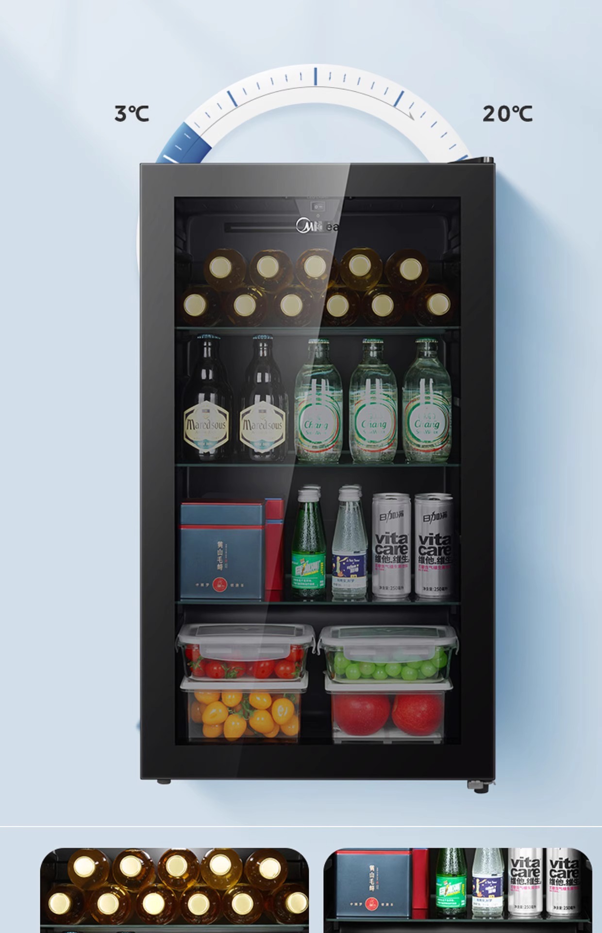 Midea Ice Bar Домашний 95L Холодильный шкаф для вина Косметический шкаф E-Sports Гостиничный шкаф для напитков Первый класс Энергосбережение