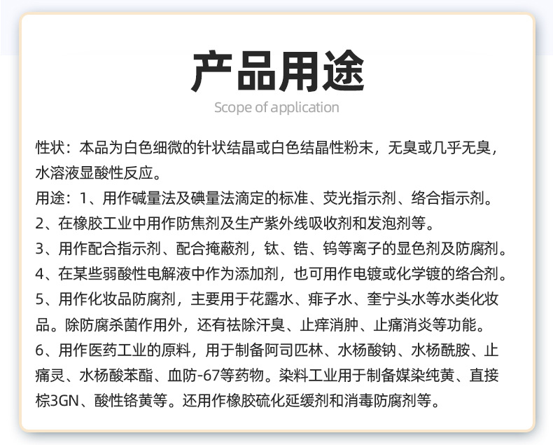 в наличии оптовая салициловая кислота, промышленный сорт, индикатор комплексообразования, пенообразователь, большой объем