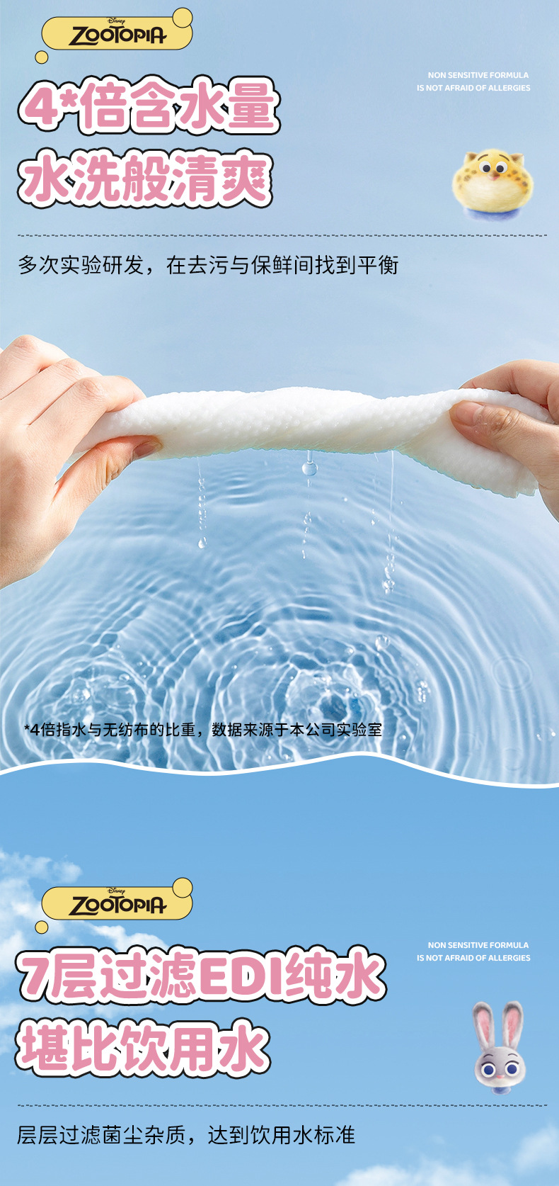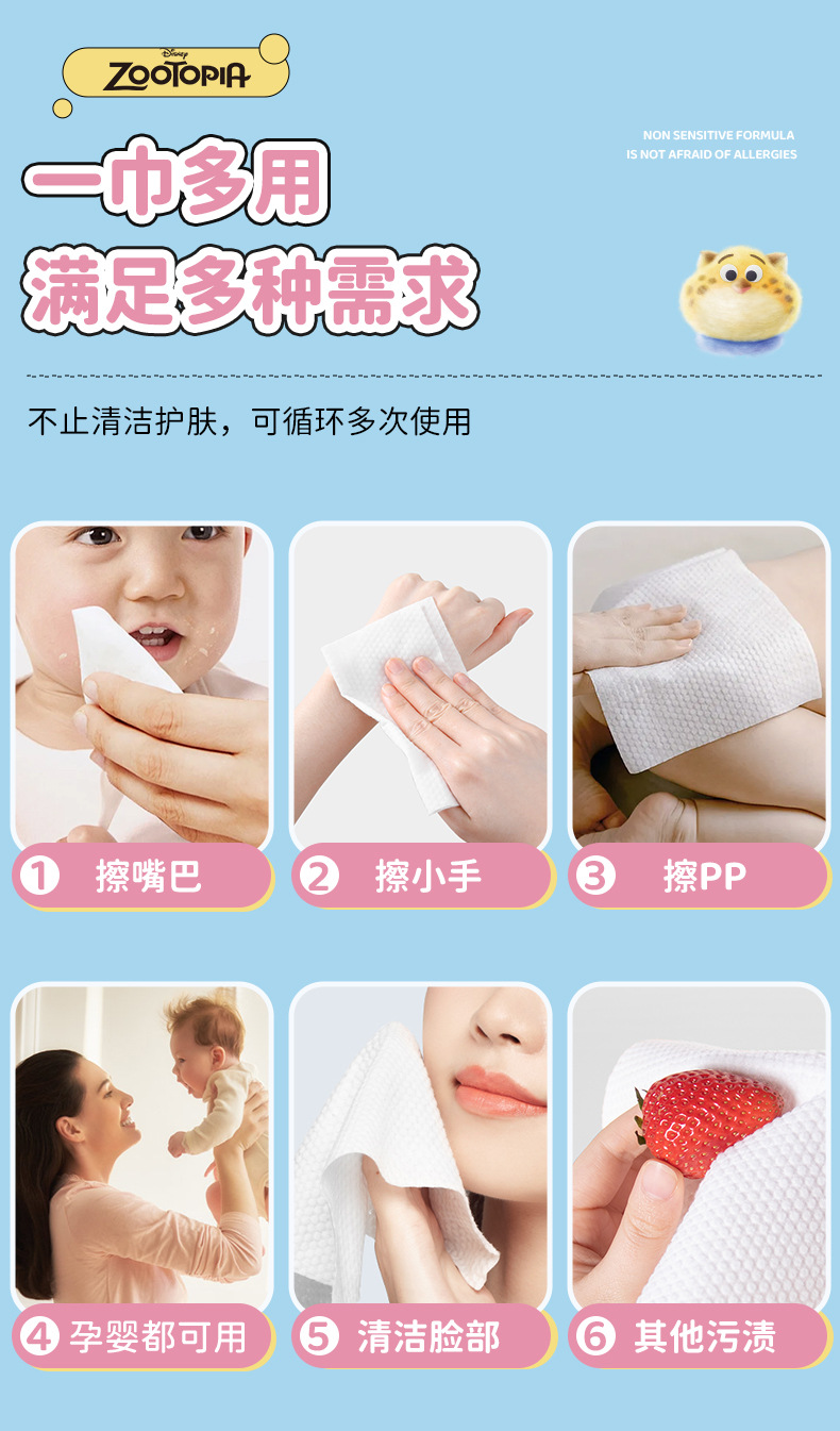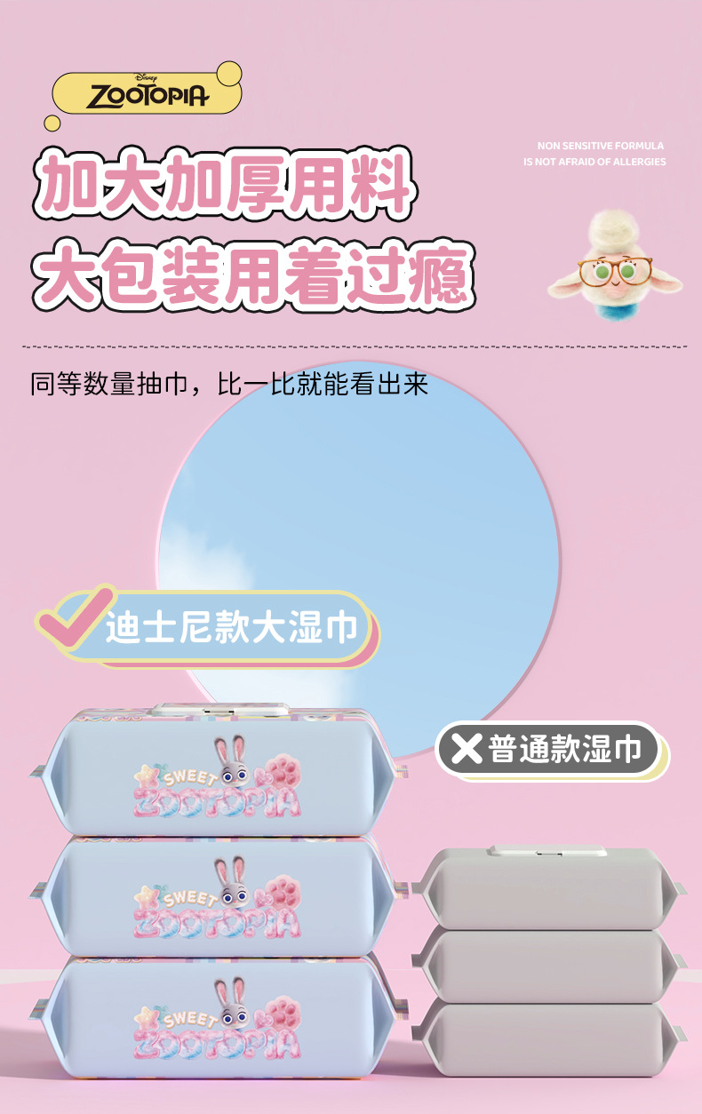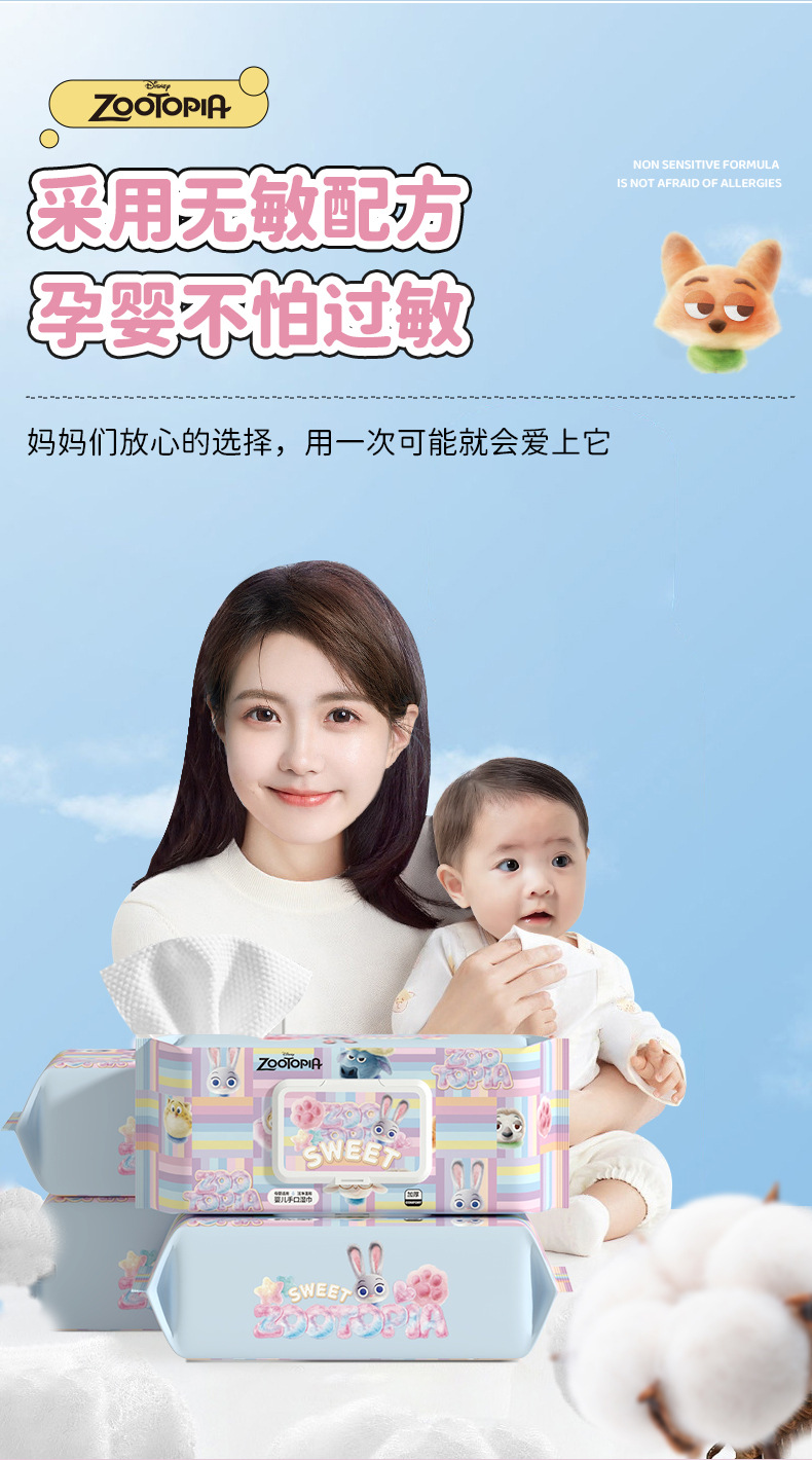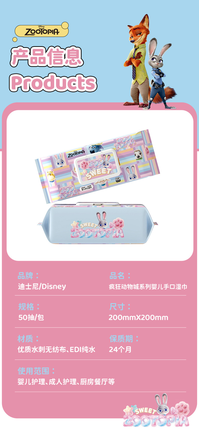 Детские влажные салфетки Disney Зверополис 50 штук большой упаковки с крышкой для матери и новорожденного
