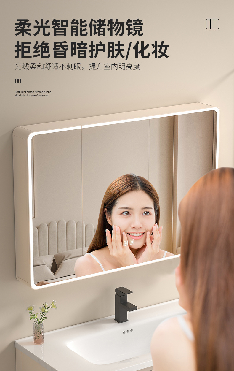 Зеркальный шкаф из алюминия для ванной комнаты, светодиодное умное зеркало, настенное косметическое зеркало с отверстием для бумаги