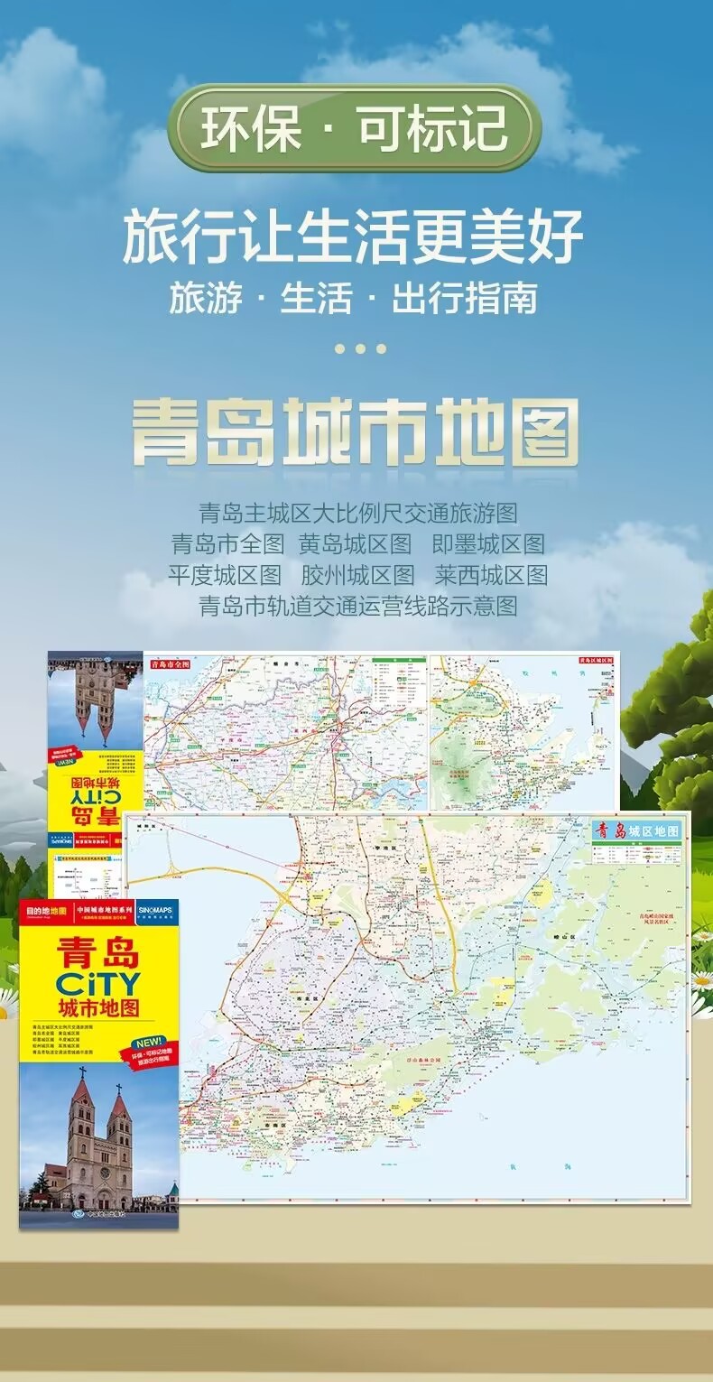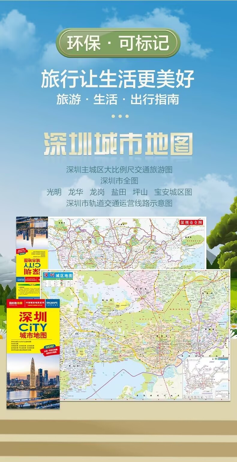 Новая версия 2025 года, серия карт городов Китая, туристический гид, транспортные достопримечательности, складной маркер