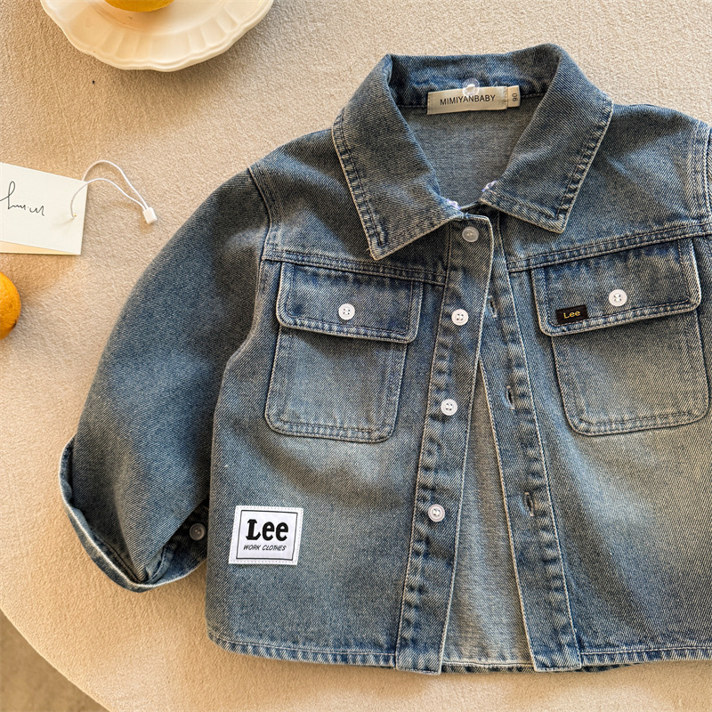 в наличии детская рубашка 2025 весна новое мужское и женское детское одежда с принтом рубашка для малышей универсальная джинсовая рубашка