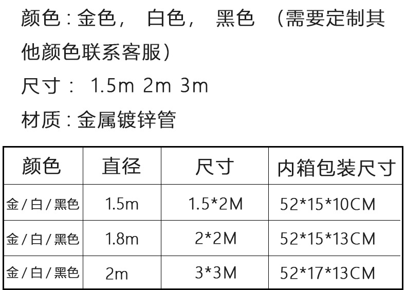 Размер Gold 3*3m gold 2*2m gold 1.5*2m