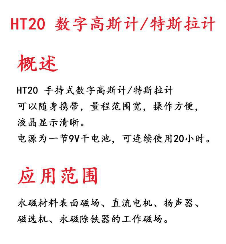 Гауссметр Shanghai Hengtong HT20, портативный цифровой измеритель магнитного поля