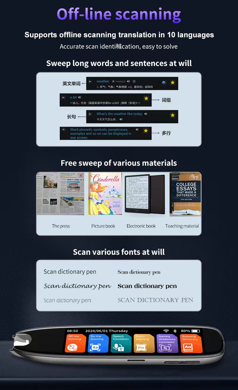 Международная сканирующая переводческая ручка, перевод на китайский, немецкий, французский, японский, корейский, традиционный кантонский, многоязычная фотография