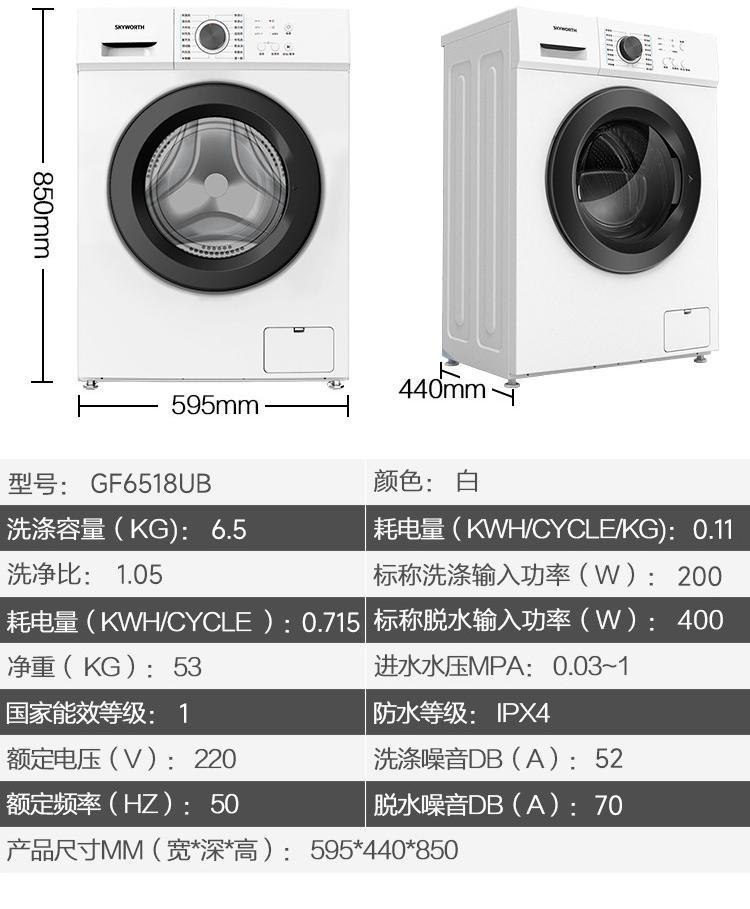 Стиральная машина Skyworth 6.5kg, белая, с самочистящей функцией, барабан 6.5kg