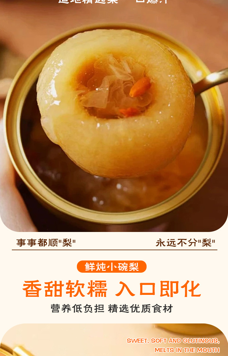 ![]() | Fresh stewed small bowl of pear 260g/bowl | 2шт: ¥4.90, 5000шт: ¥4.50, 10000шт: ¥3.90 | 563683 | 5711054976900 |