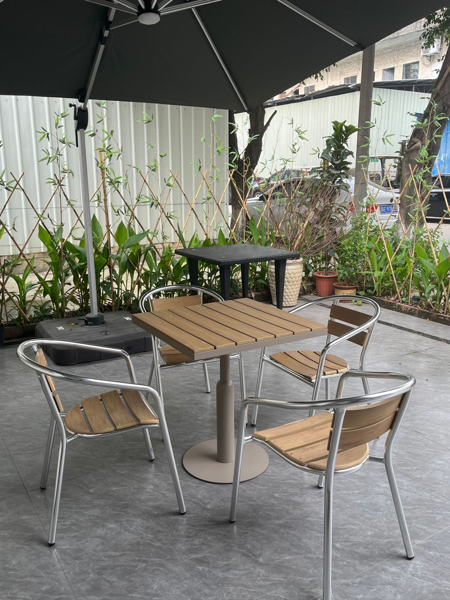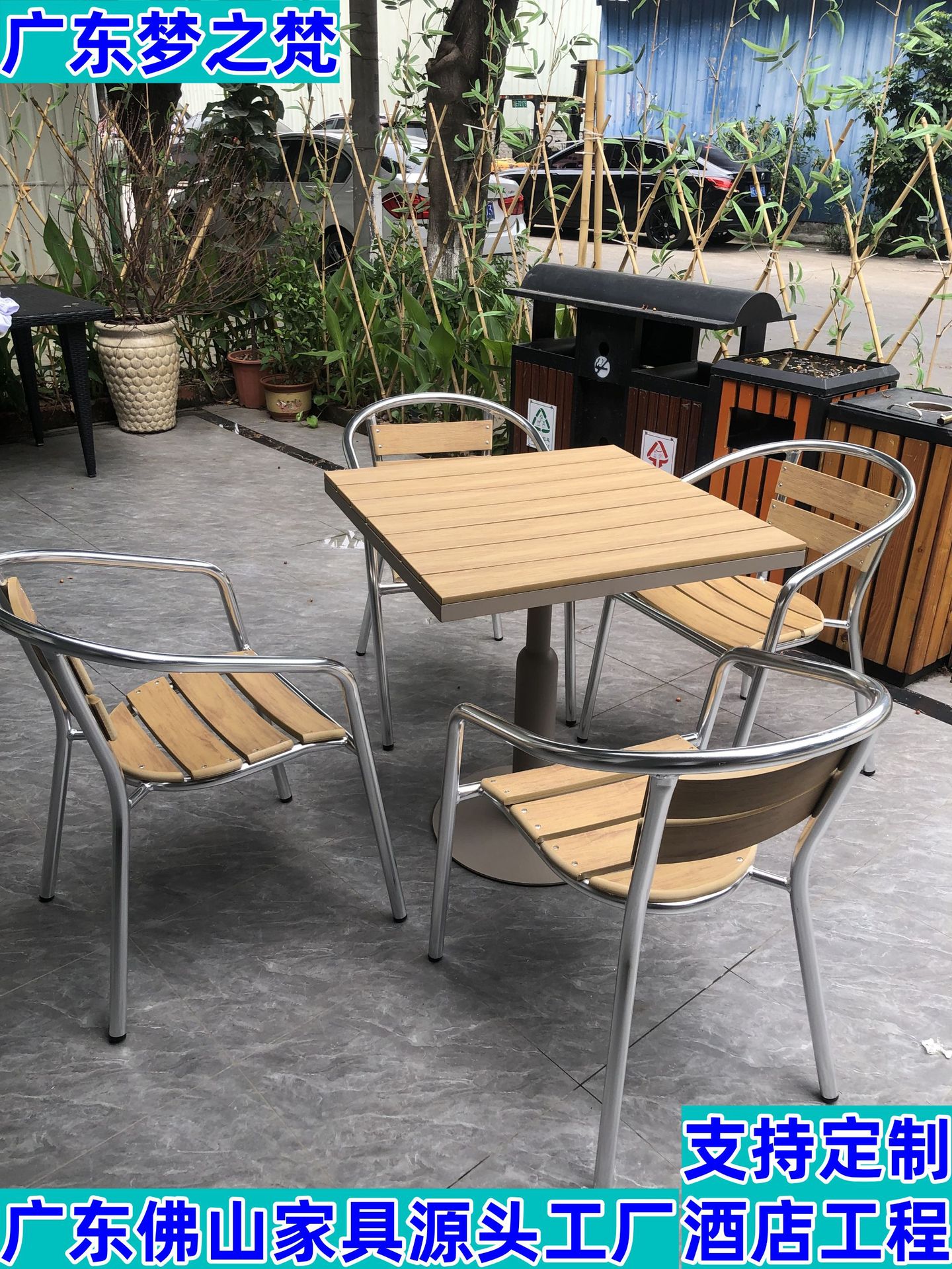 Набор столов и стульев из алюминия и дерева для улицы, комбинация для двора, балкона, садовый набор для отдыха