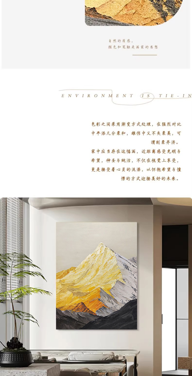 Чистая ручная масляная живопись Living room oil painting sunshine jinshan abstract texture painting corridor aisle entrance decorative painting