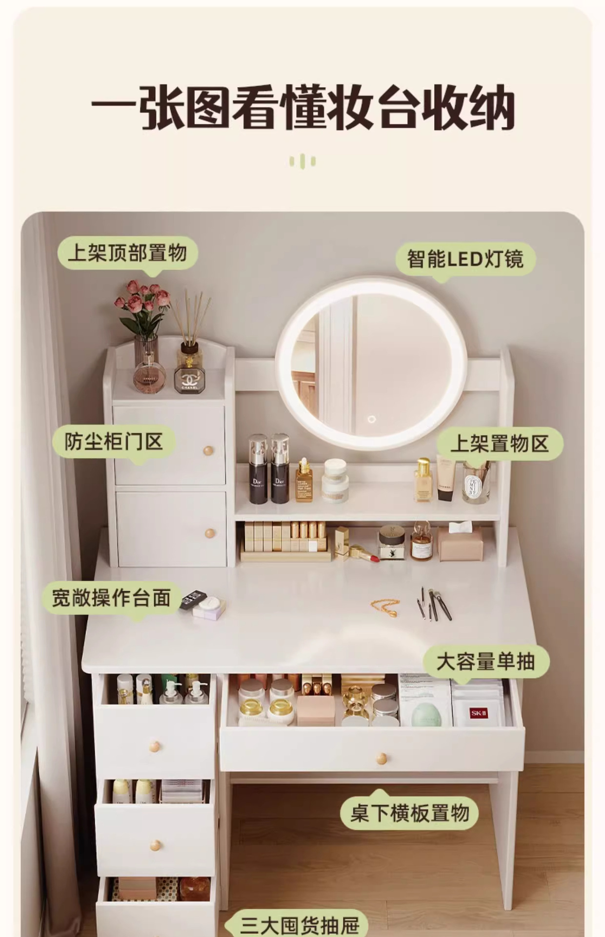 梳妆台卧室���约现代2024新款轻奢主卧小户型化妆桌镜子收纳柜一体