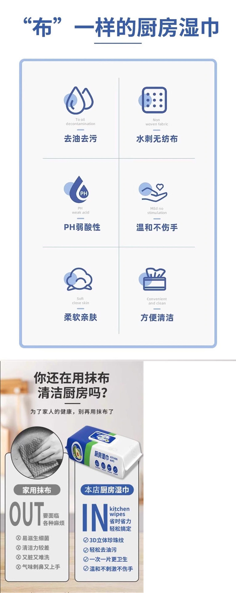Номер товара 80 kitchen wipes cleaning tool strong oil removal range hood special wet wipes for home decontamination stove