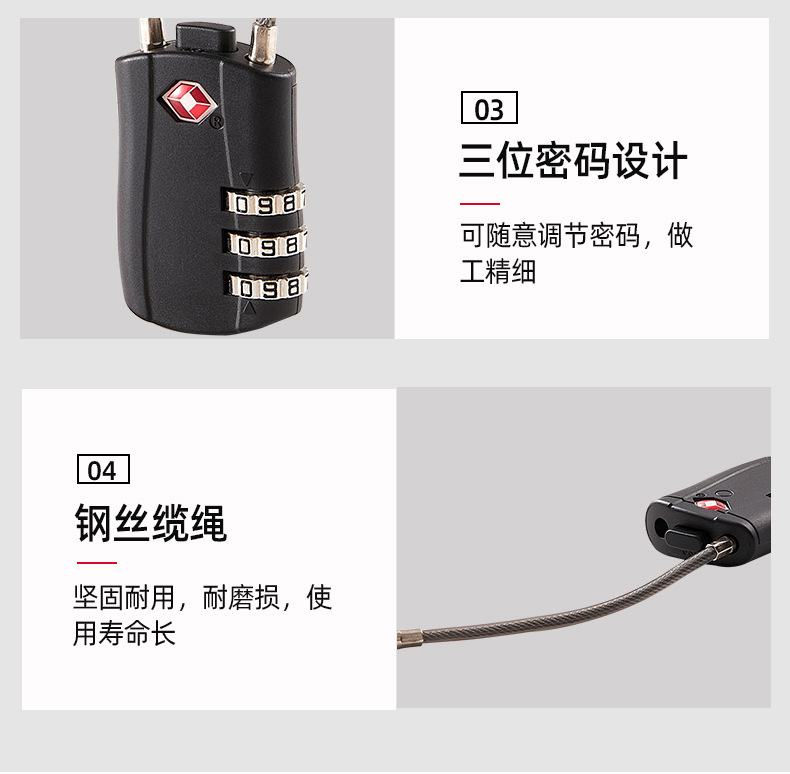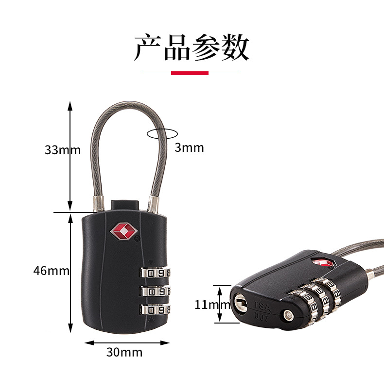 Замок TSA TSA007, проволочный трос, маленький замок для путешествий, кодовый замок 527