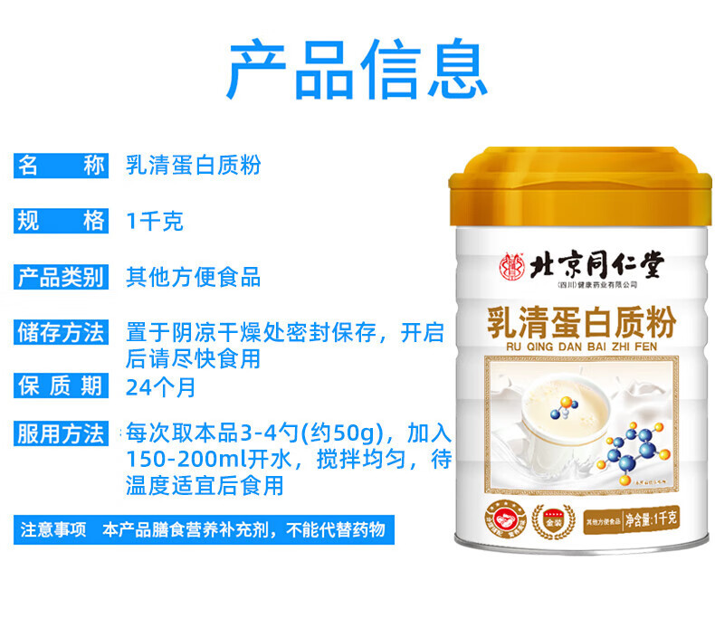 Сывороточный протеиновый порошок Beijing Tongrentang 1000г, питание для молодежи и родителей среднего возраста, подарок на праздник, оригинальный товар